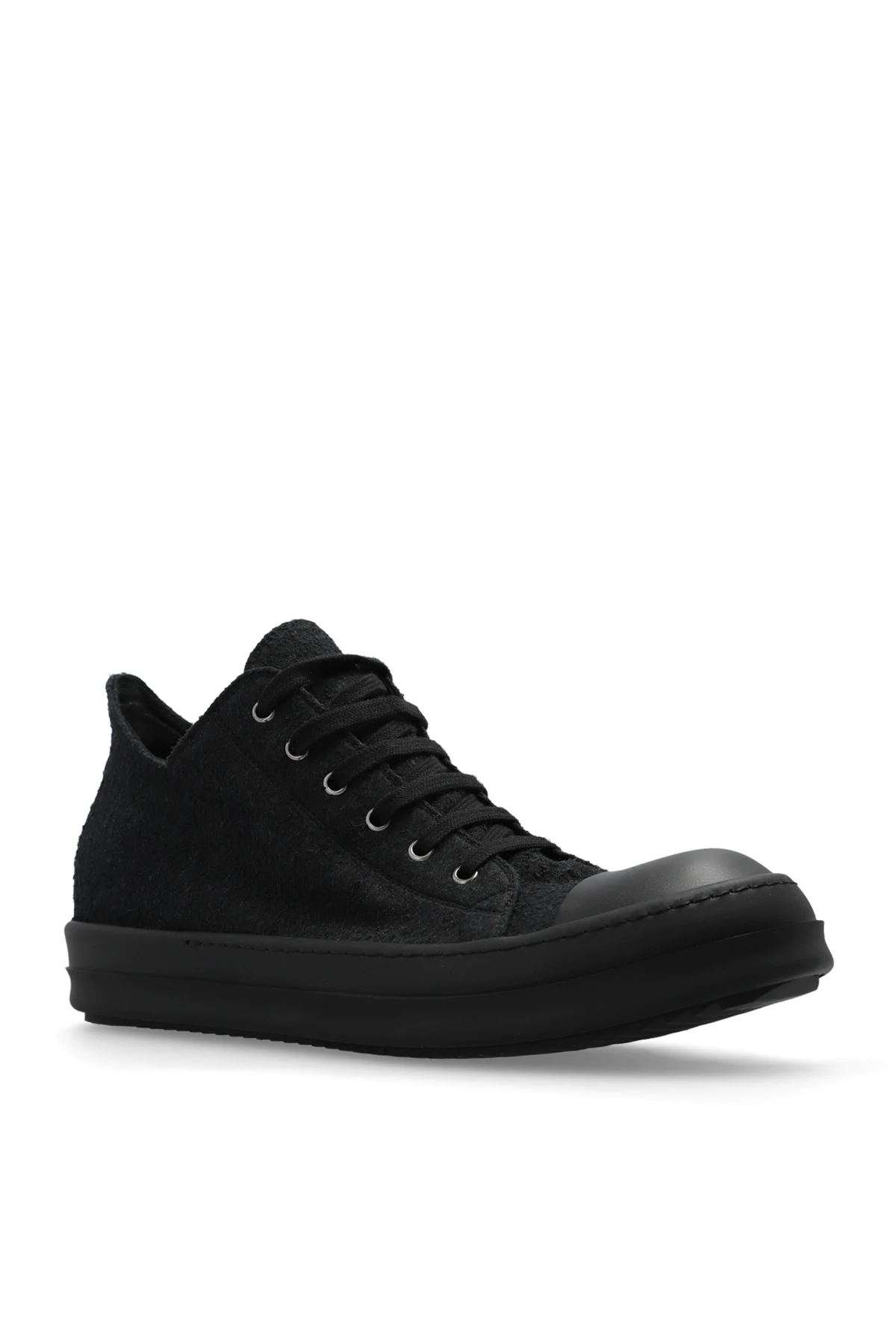 Black ‘Sha Low’ sneakers from Rick Owens. Made from GOTS-certified cotton, this lace-up model sits on a black rubber sole.