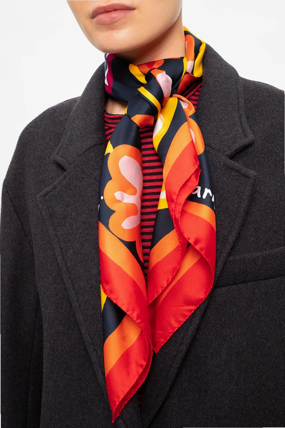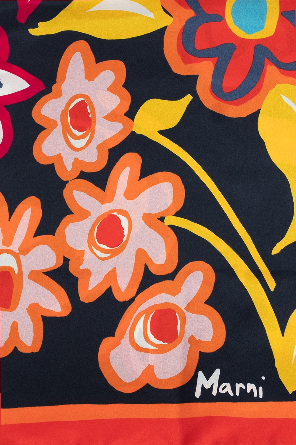 Multicolored scarf from Marni. Crafted from silk, this accessory is enriched with a colorful floral print and a white logo detail.