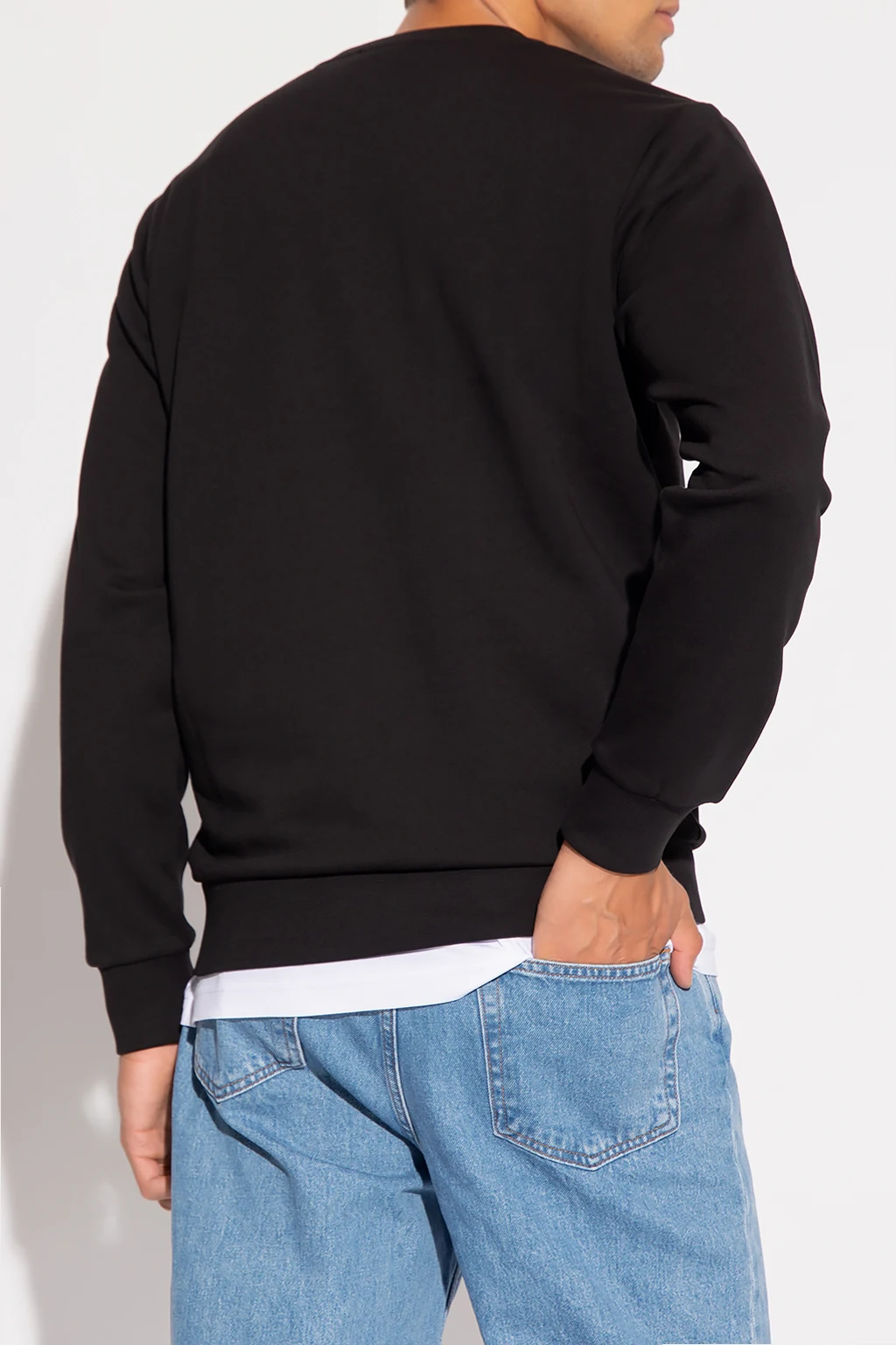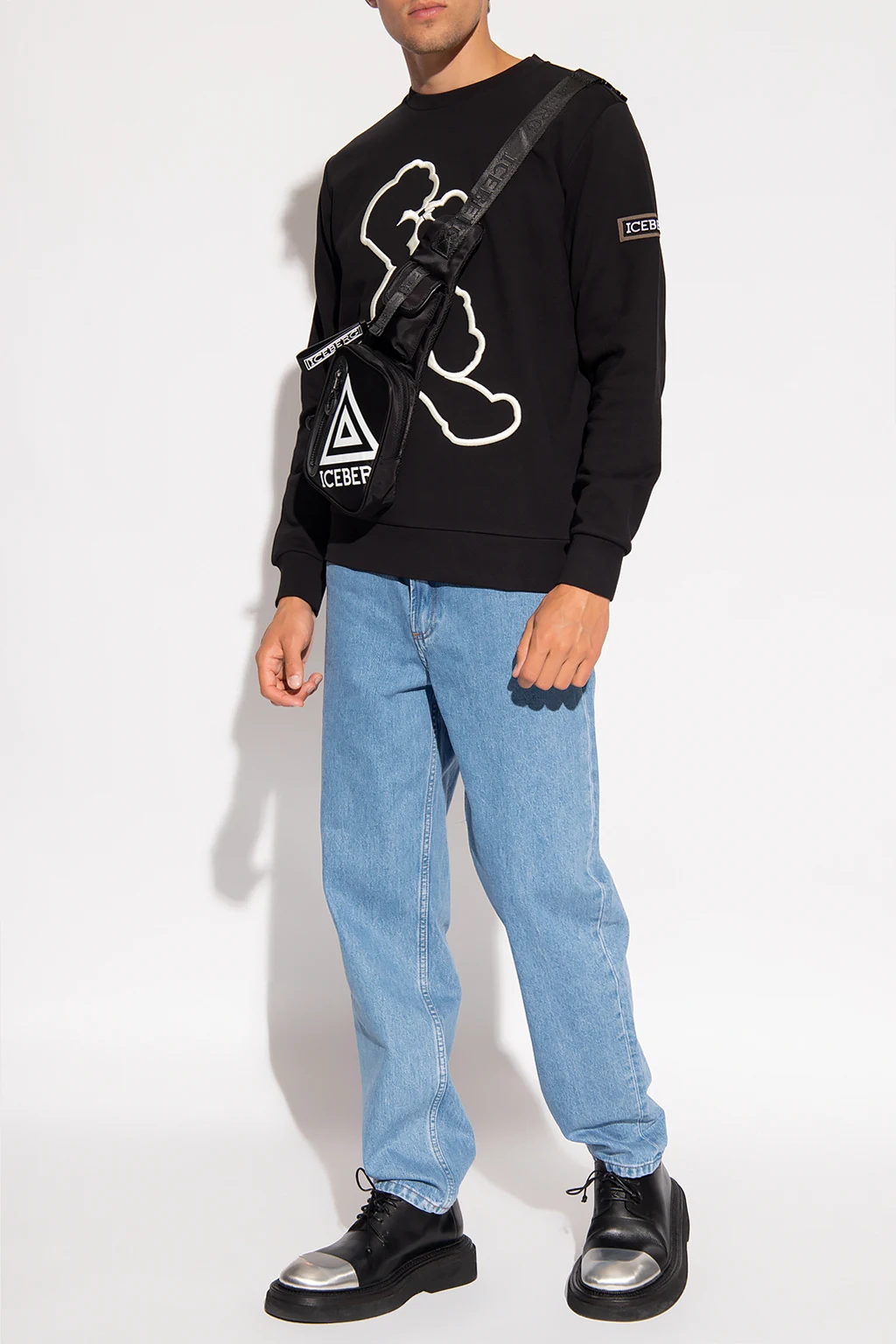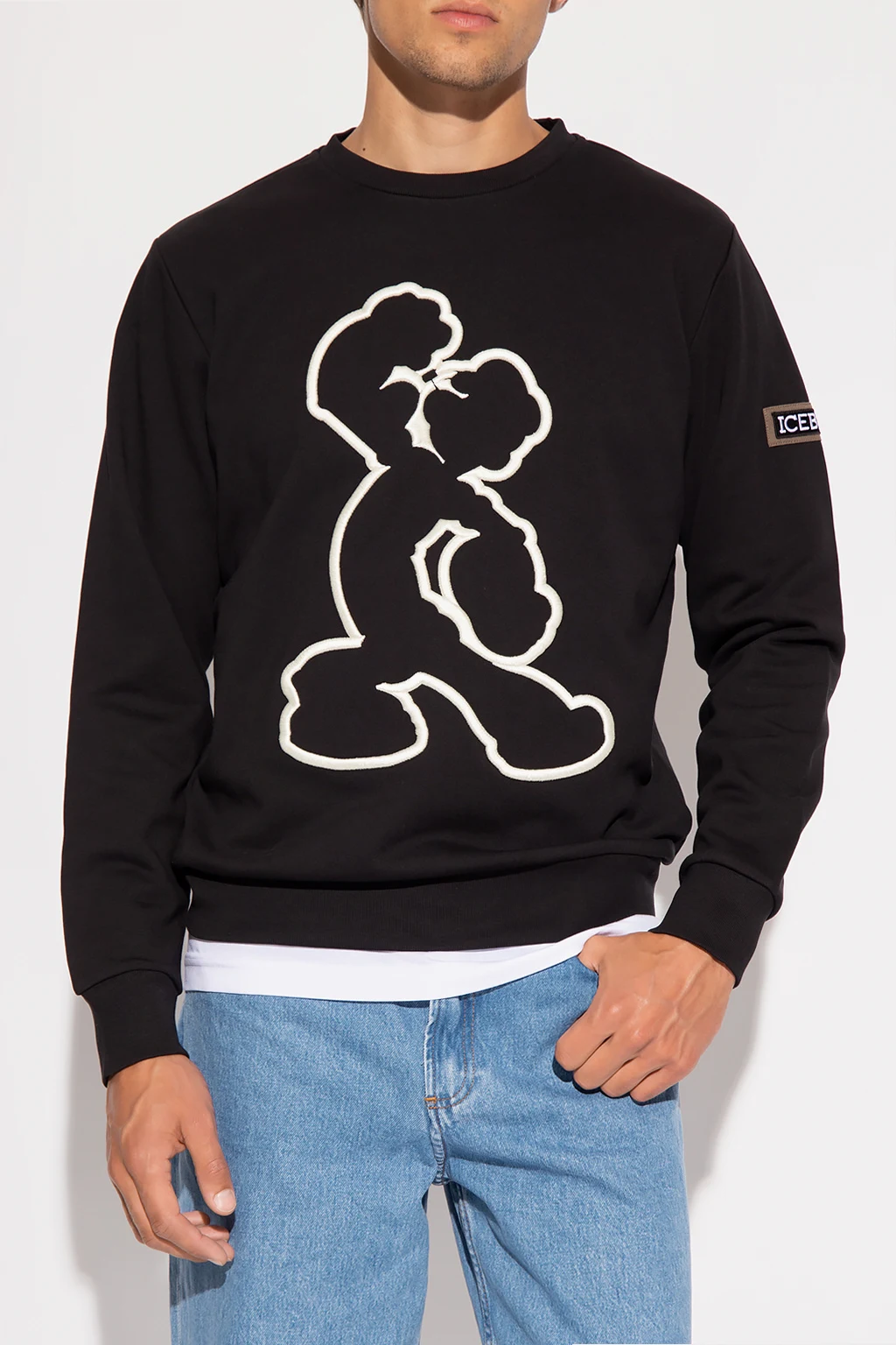 Black crewneck sweatshirt from Iceberg. Crafted from cotton jersey, this style showcases white graphic embroidery with a Popeye motif and ribbed trims on the collar, bottom hem and cuffs.