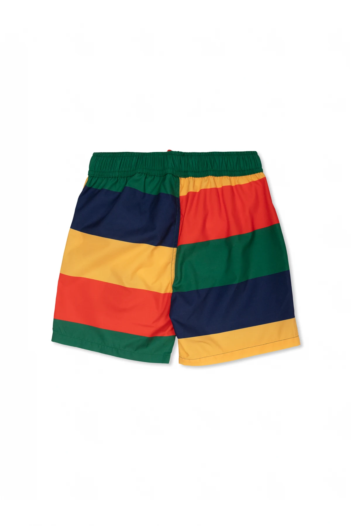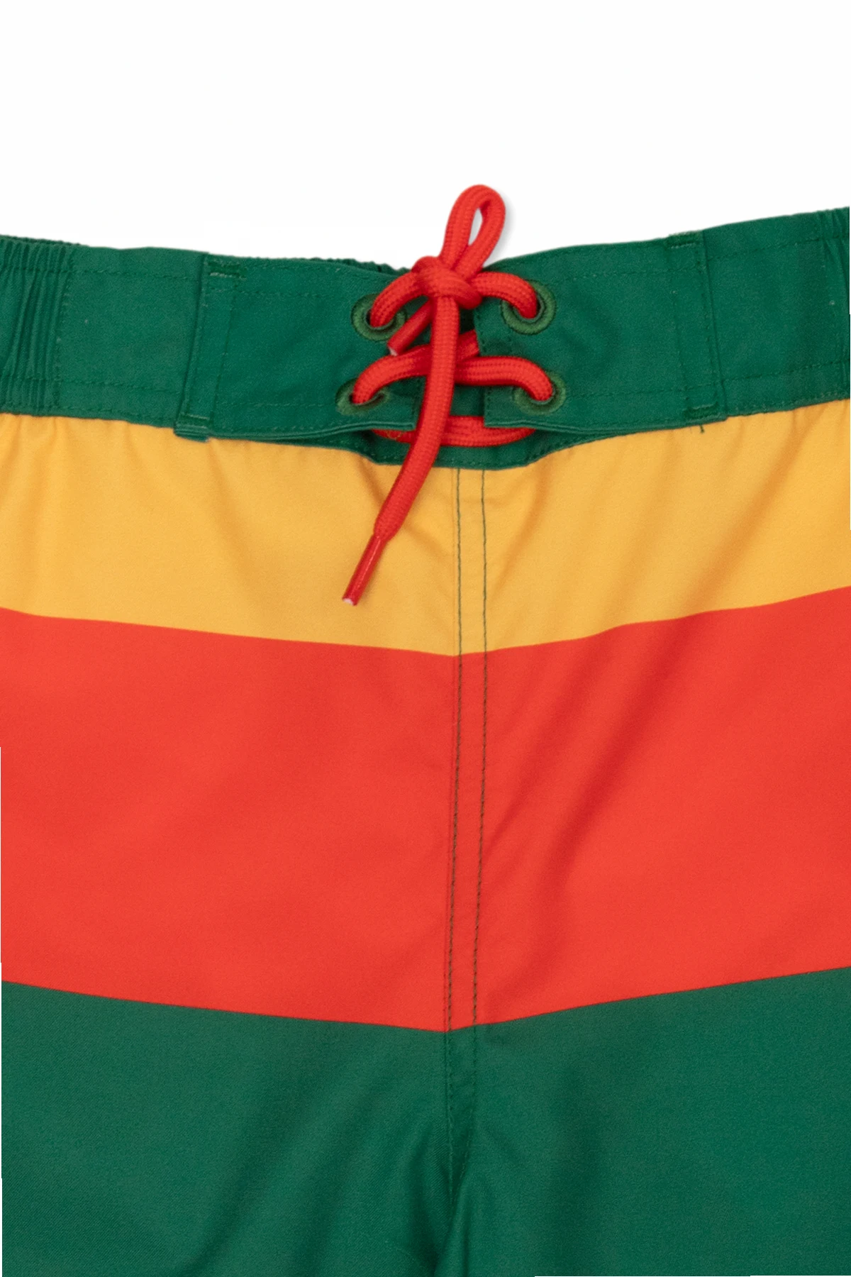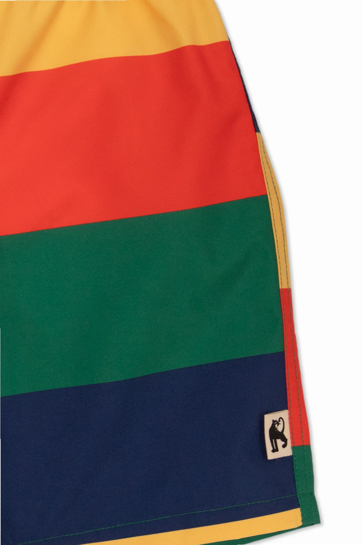 Wir präsentieren Bade-Shorts vom renommierten Designer Mini Rodini , die eine aufregende Farbpalette mit unübertroffener Funktionalität verbinden. Das dominierende, bunte Design, ausgedrückt durch Streifen in Grün, Gelb, Rot und Marineblau, verleiht diesem Produkt eine fröhliche und urlaubshafte Stimmung. Der klassische Schnitt mit geraden Beinabschlüssen, die knapp über dem Knie enden, in Kombination mit einem einzigartigen, vertikalen Streifenmuster, macht diese Shorts zu einer außergewöhnlichen Wahl für die Sommerzeit.