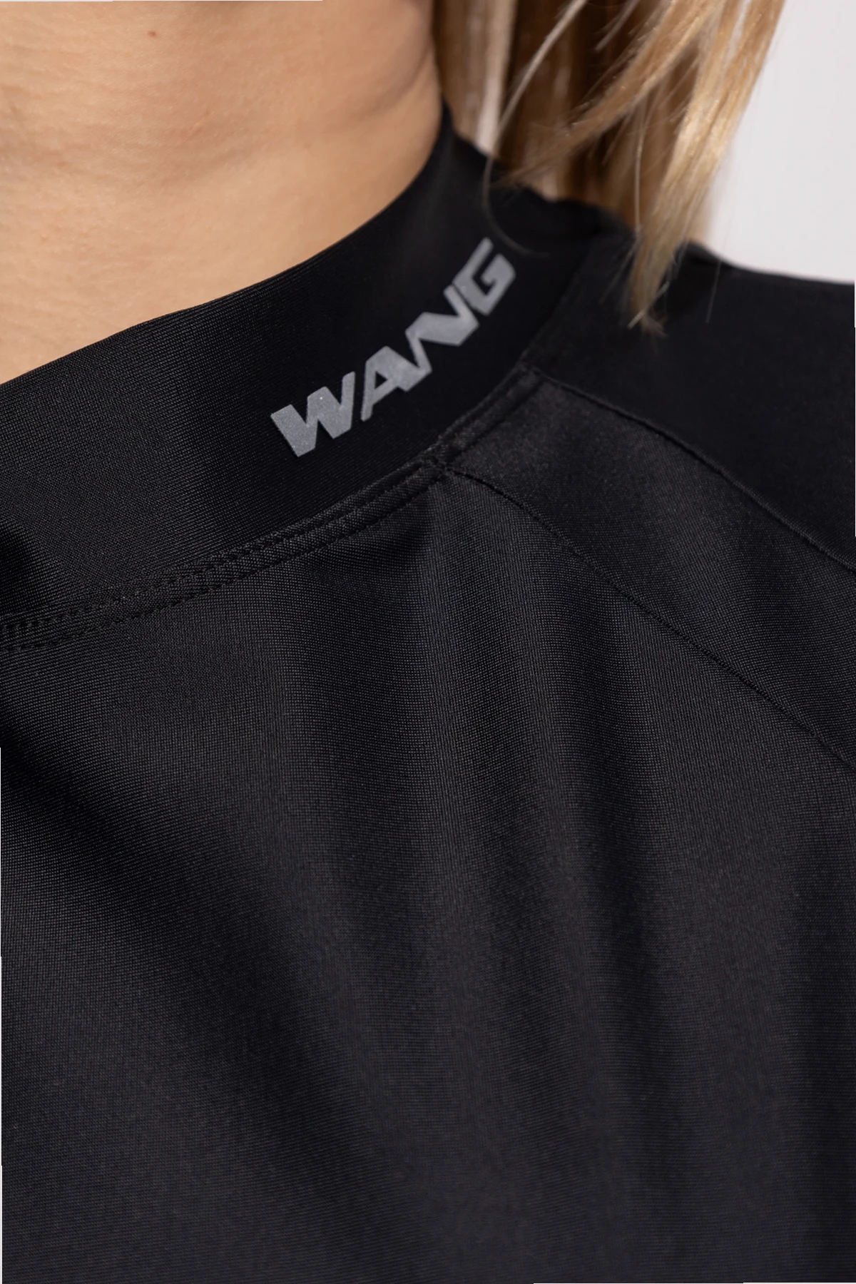 Der charakteristische schwarze Farbton verleiht ihm Universalität, sodass es die ideale Wahl für verschiedene Anlässe darstellt. Ein subtil erhöhter Kragen mit dem markanten „WANG“-Logo verleiht ihm einen raffinierten Charakter und verbindet sportlichen Stil mit einer eleganten Note.