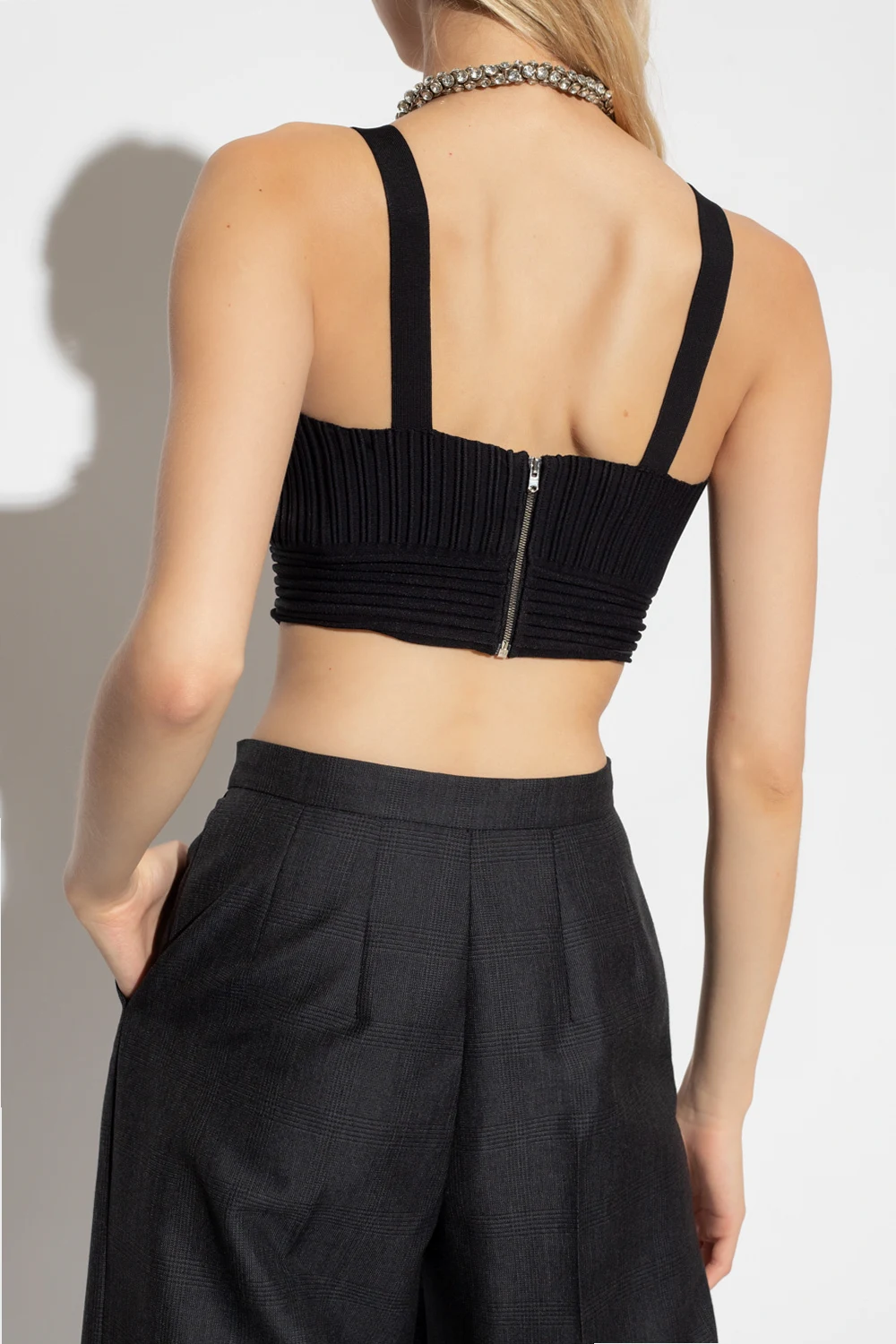 Black ribbed sleeveless top with a back zip and cut-out on the front from Alaia.