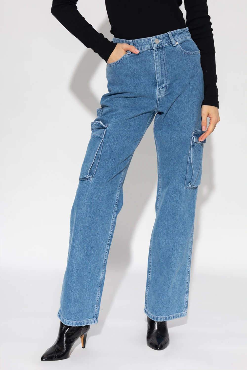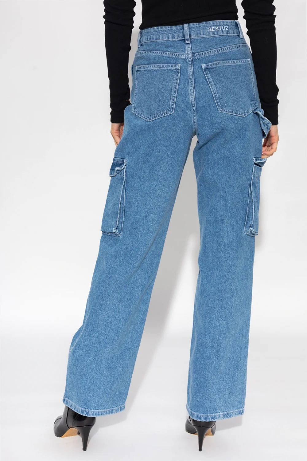 Blue ‘Riannegz’ jeans from Gestuz. Crafted from cotton, this wide leg pair features a zip and button as well as seven pockets.
