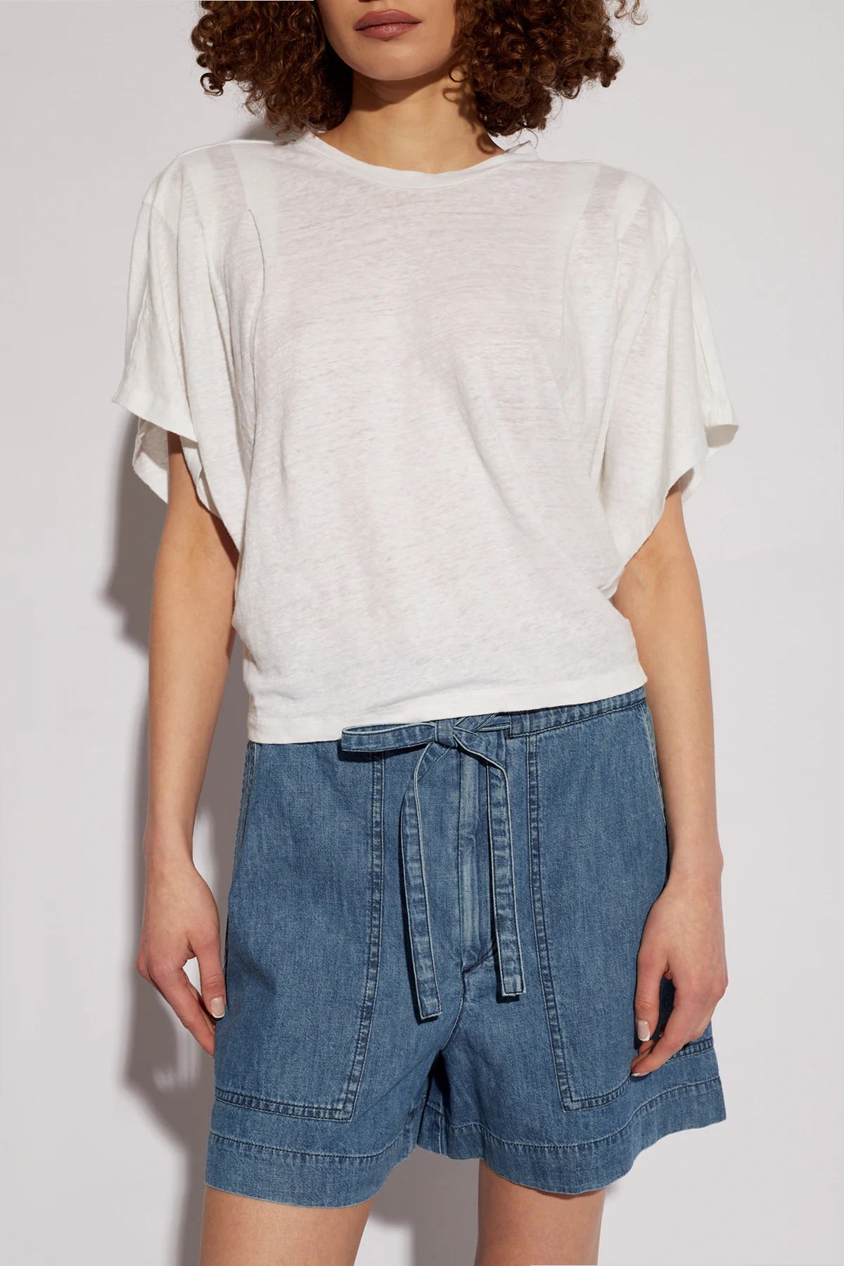 White ‘Kyanza’ T-shirt from Marant Etoile. Made of linen, this short sleeve design features pleats and a ribbed crew neck.