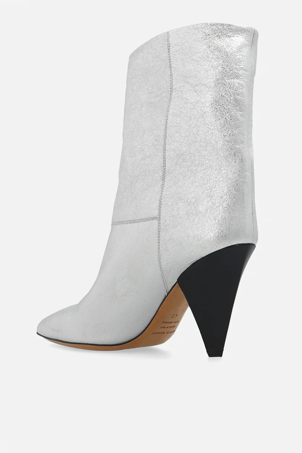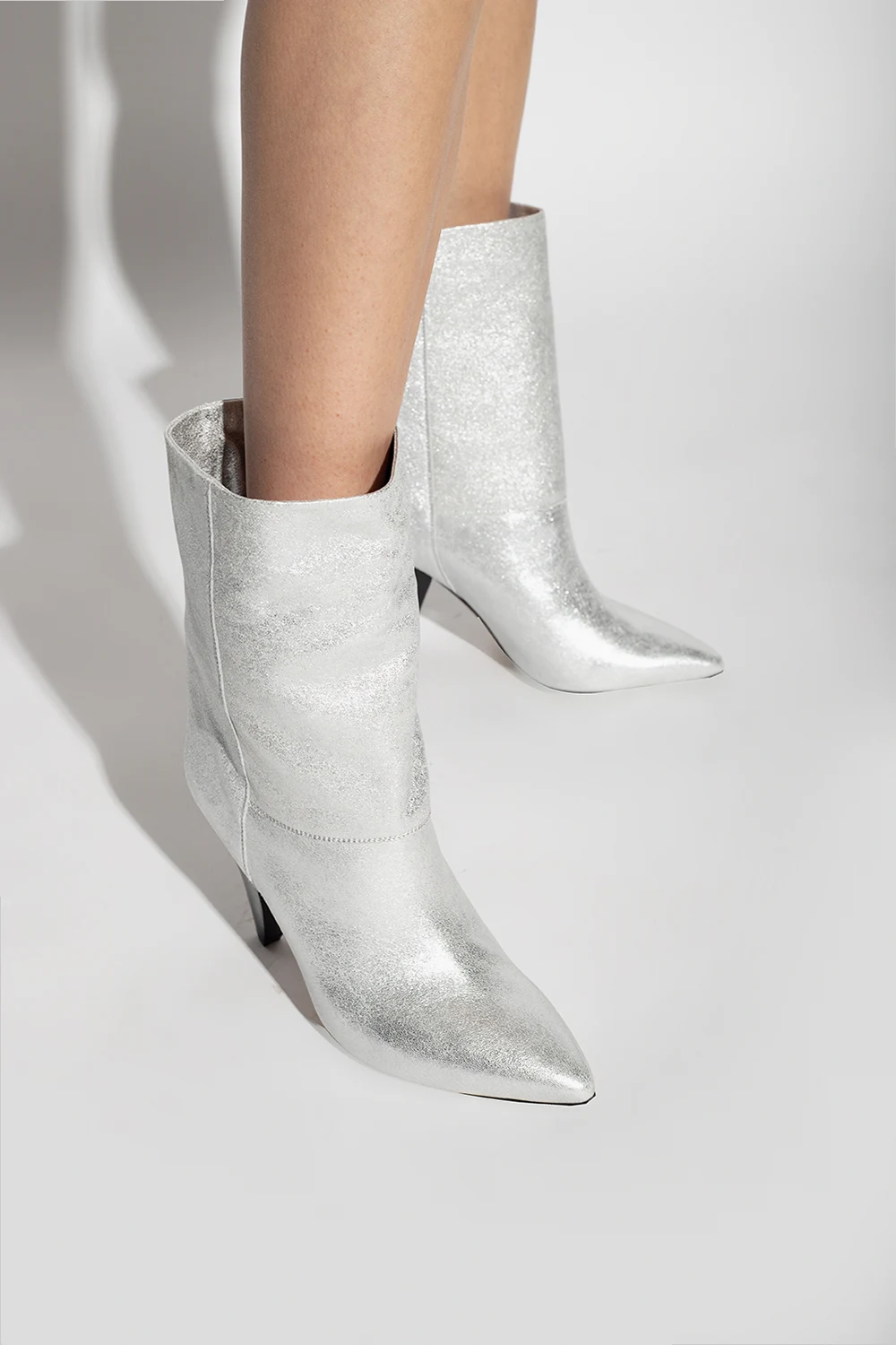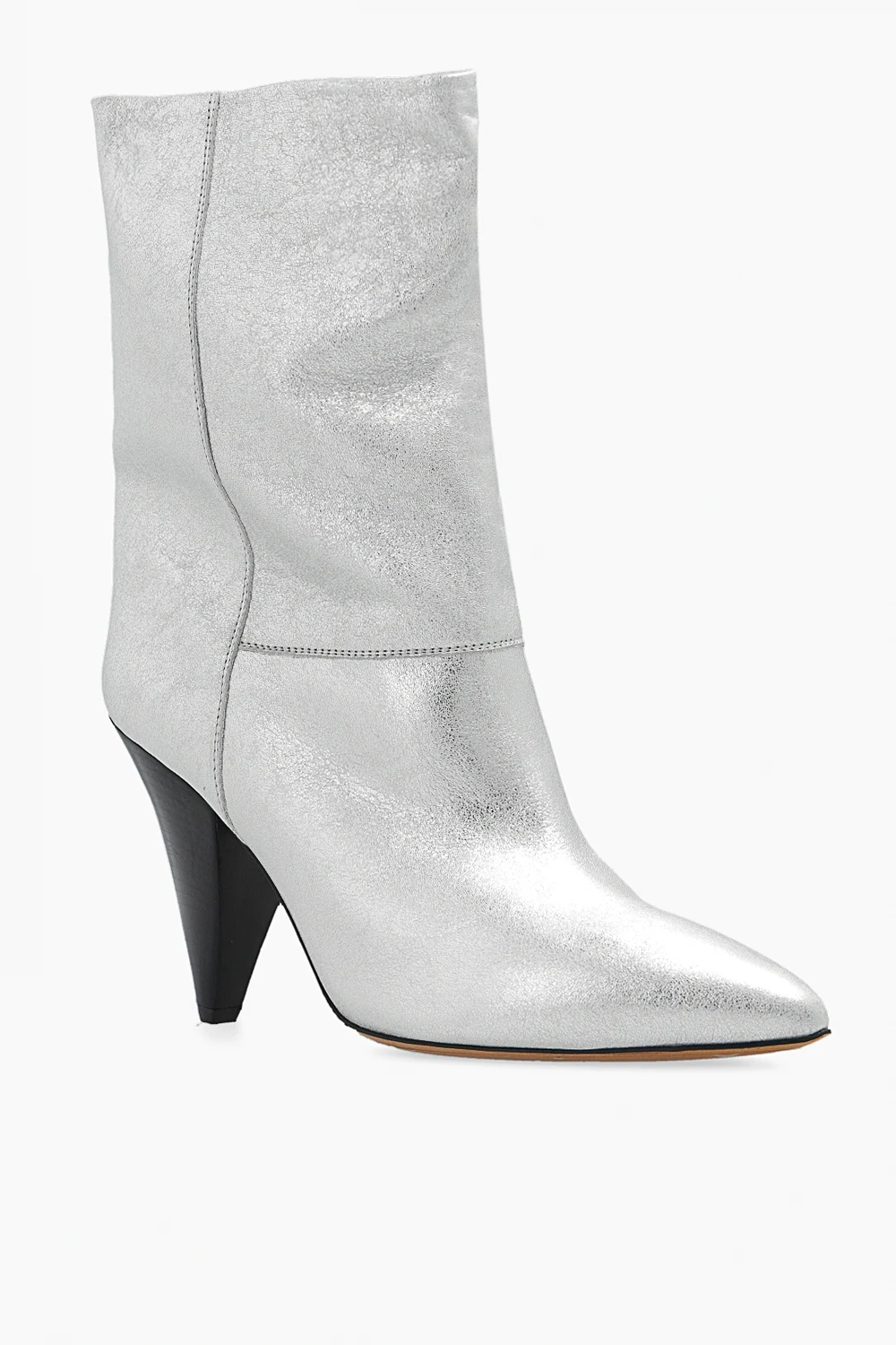 Silver-tone ‘Locky’ heeled ankle boots from Isabel Marant. Crafted from leather, this model features a slip-on silhouette, a pointed toe, a black heel and a brown leather sole.