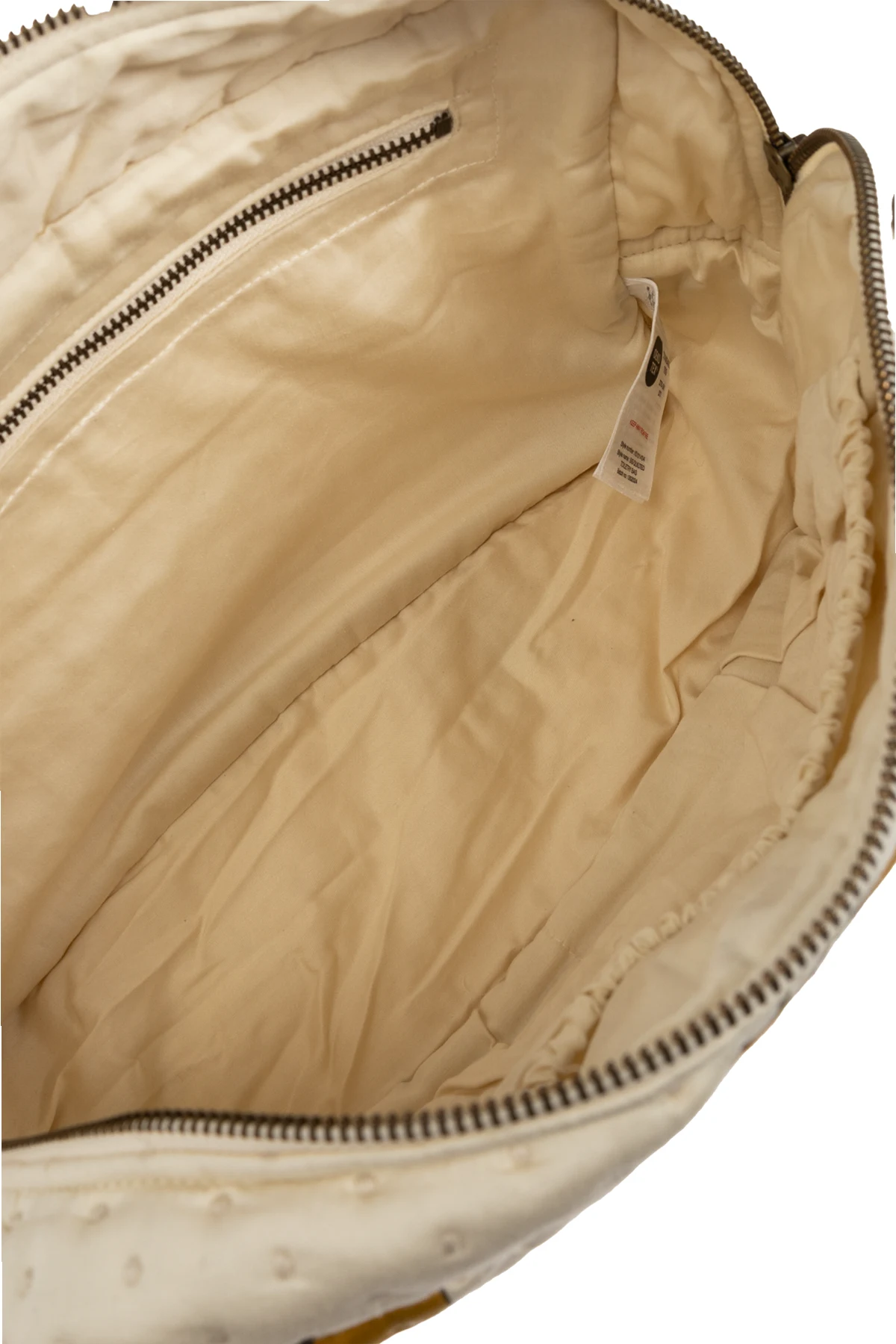 Hergestellt aus weicher, gesteppten Baumwolle , bietet das Kosmetiktäschchen nicht nur Langlebigkeit, sondern auch ästhetische Werte. Das Innere, das mit einem Stoff in ähnlichem Farbton wie der Außenstoff ausgekleidet ist, enthält eine zusätzliche Reißverschlusstasche, was seine Praktikabilität erhöht.