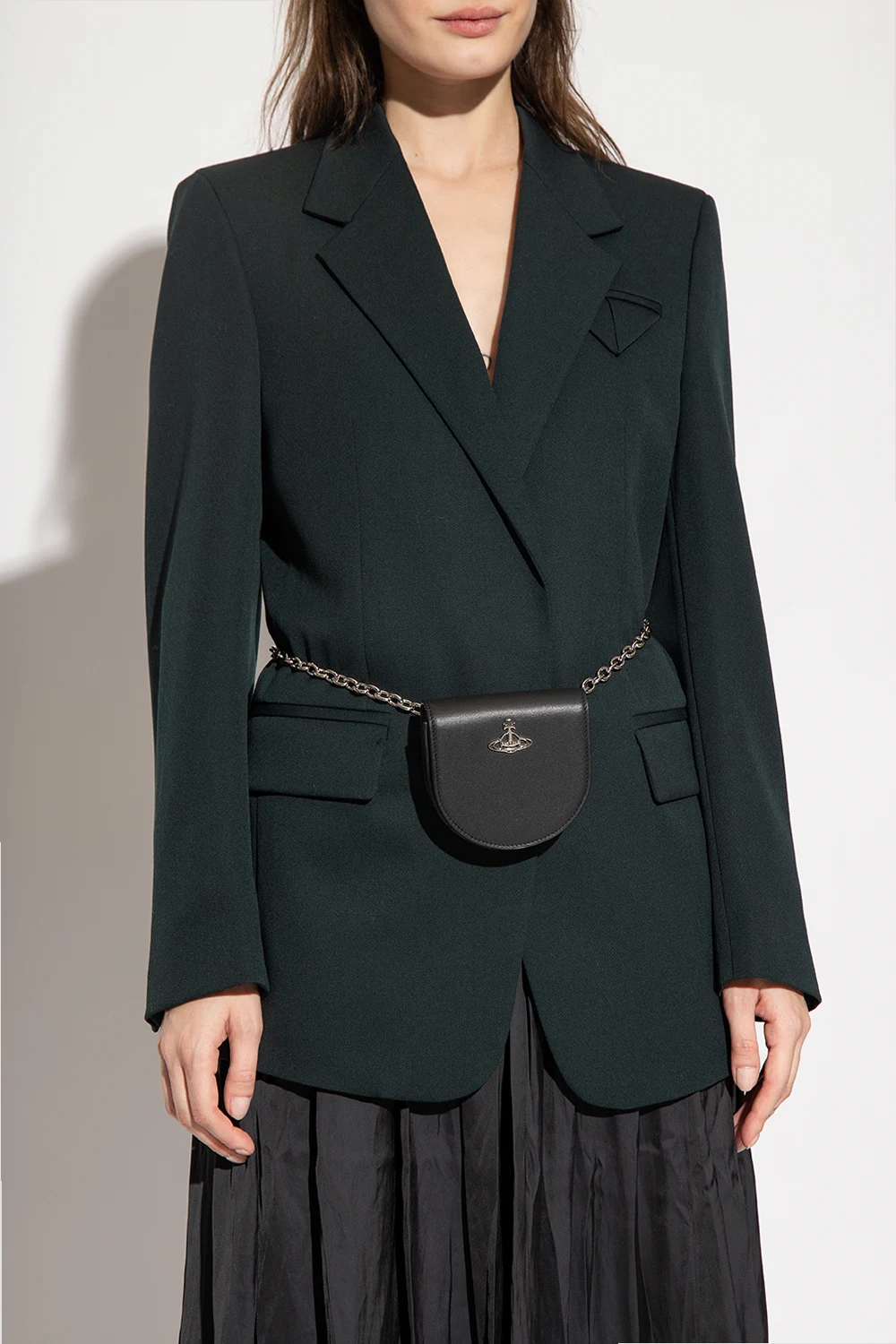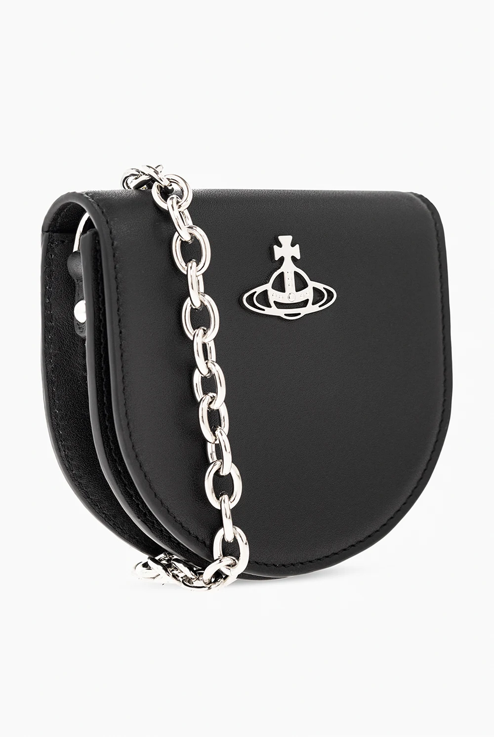Black ‘Nano Saddle’ pouch from Vivienne Westwood. Crafted from calf leather, this design secures with a magnetic snap and features a logo plaque on the front, silver-tone metal hardware, a detachable chain strap and one internal compartment.