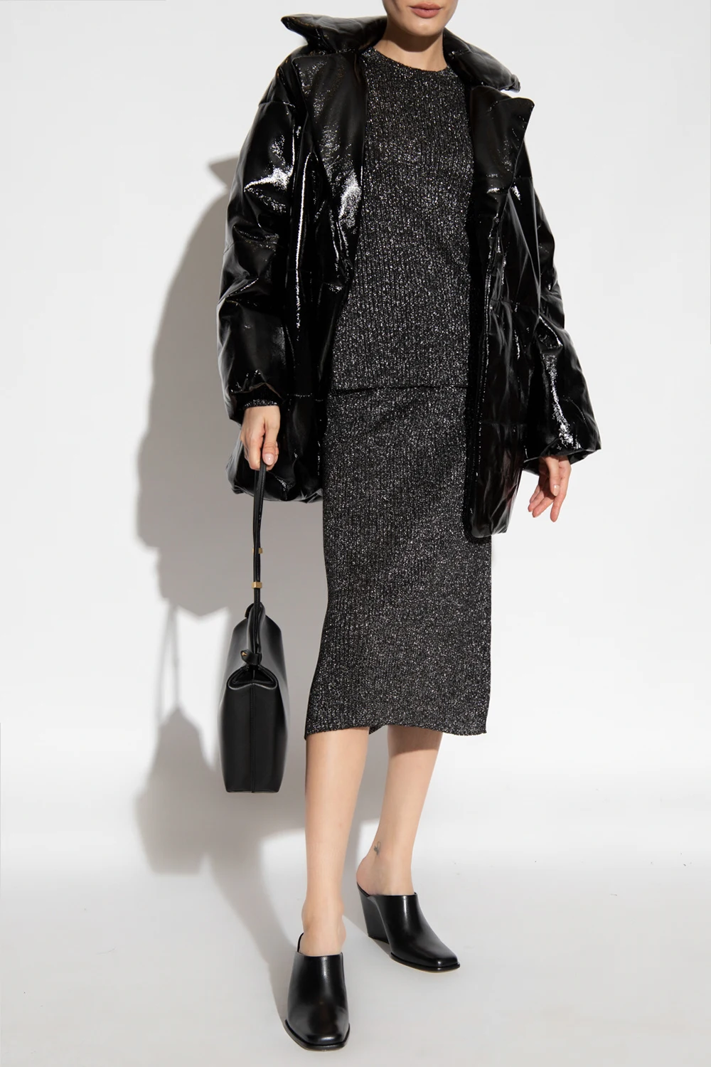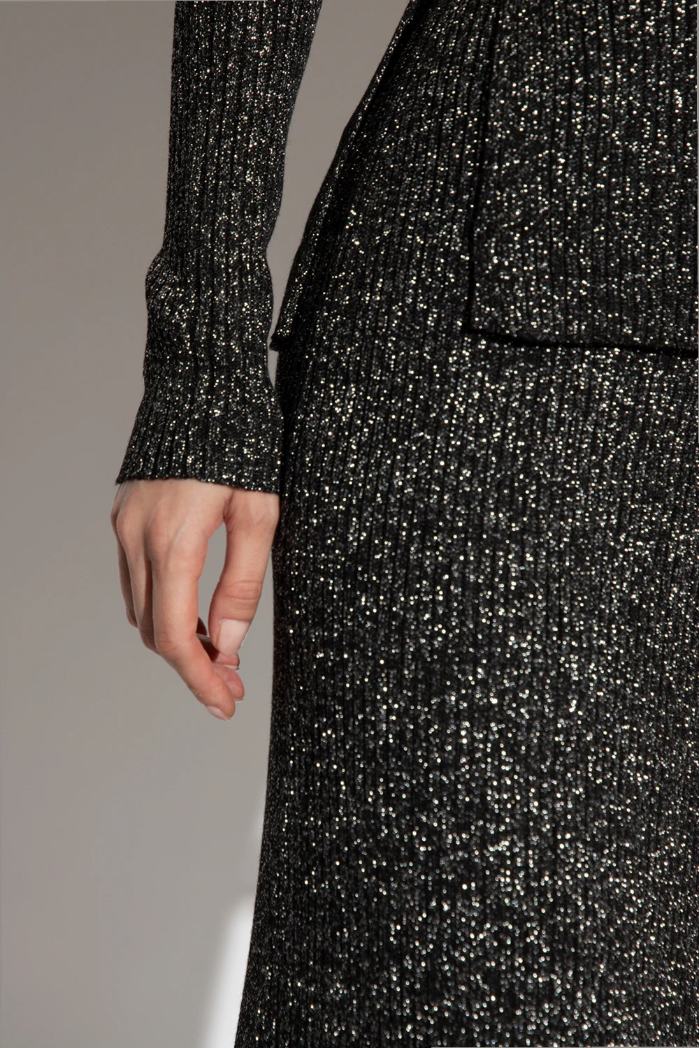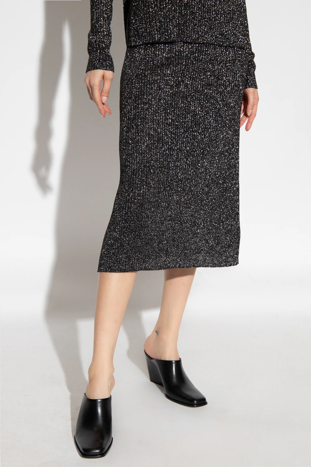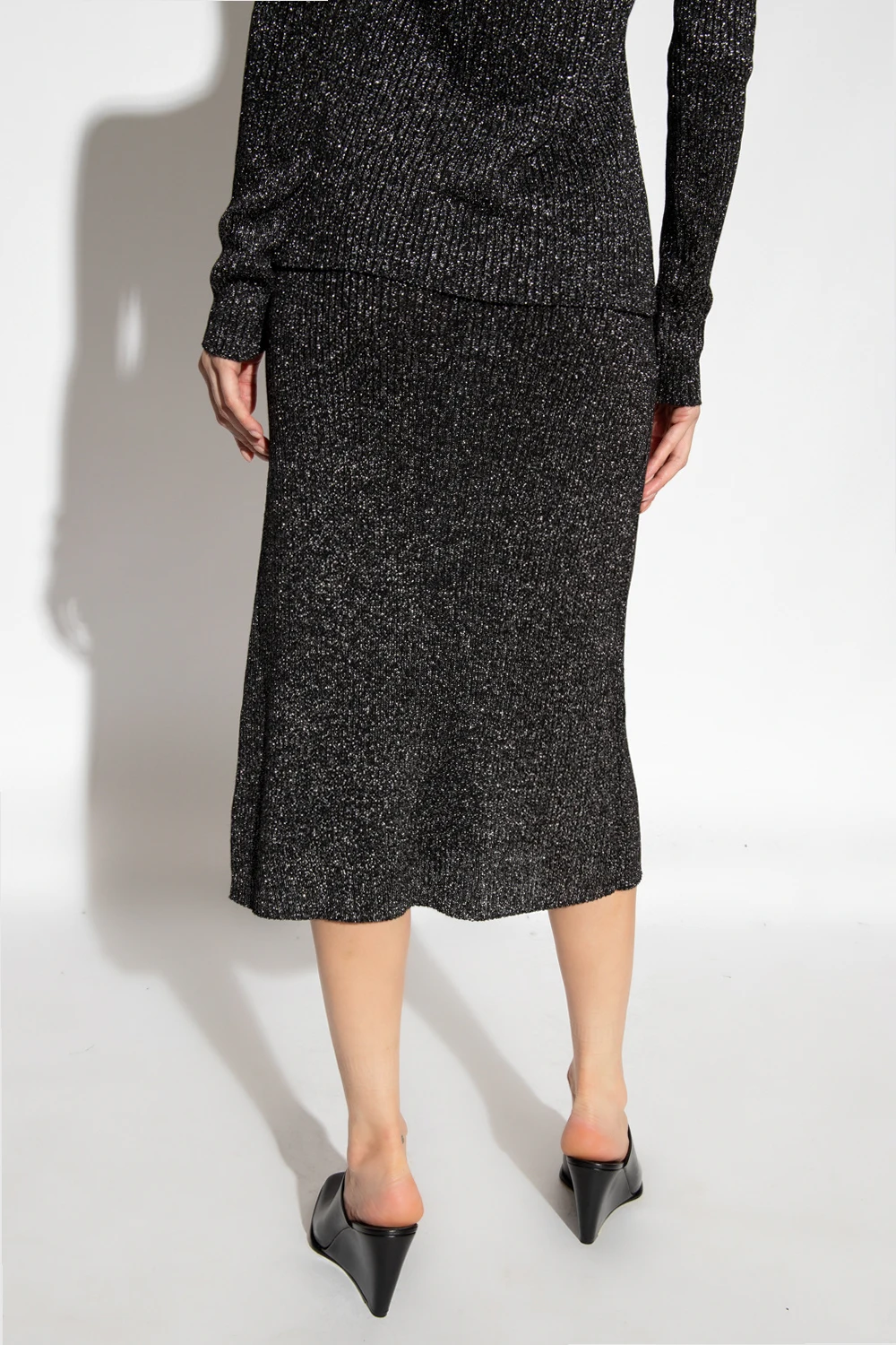 Black and silver-tone skirt from Proenza Schouler White Label. Crafted from ribbed knit, this style features glossy lurex yarn trims and an elasticated waistband.