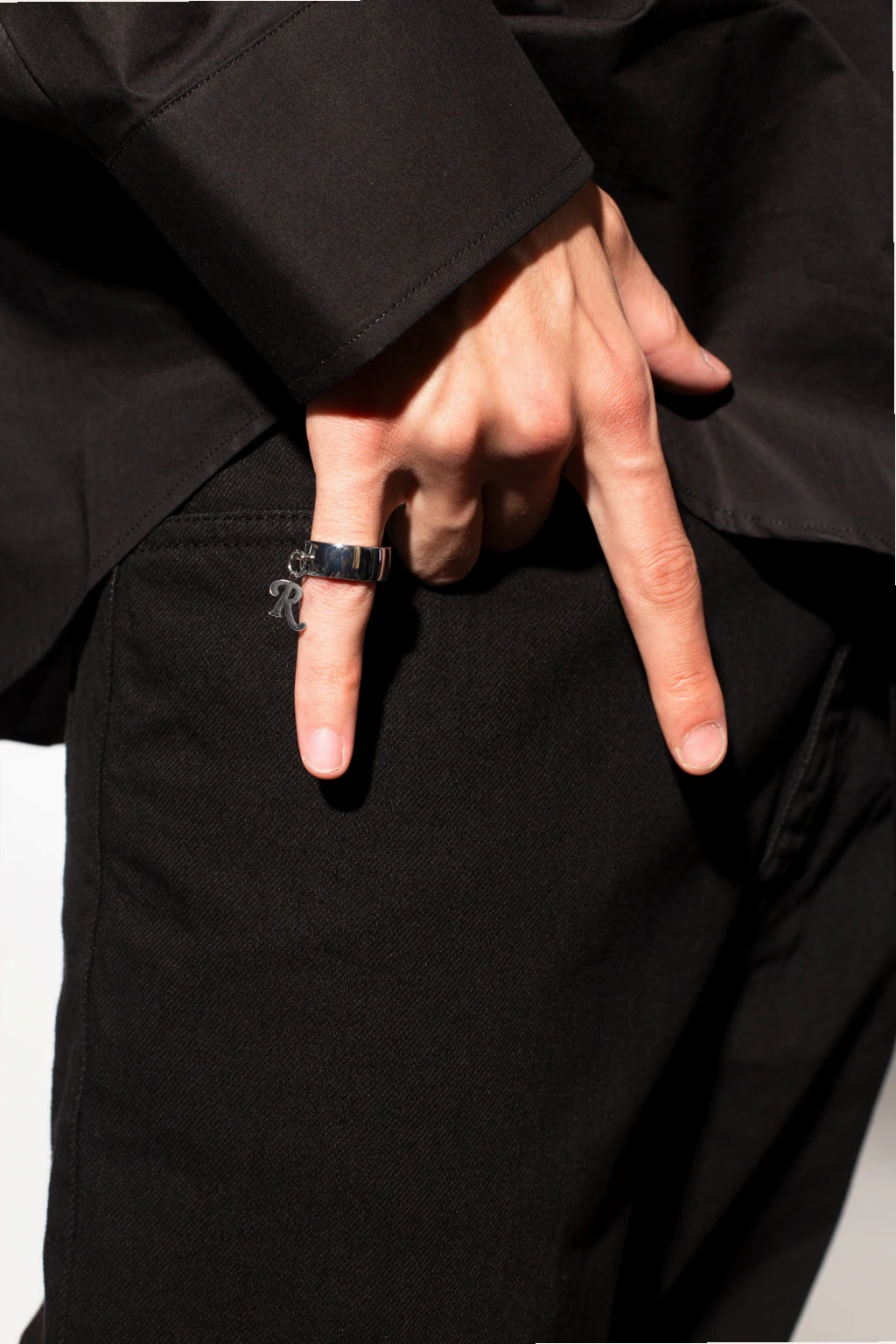 Silver-tone ring with a logo appliqué from Raf Simons.