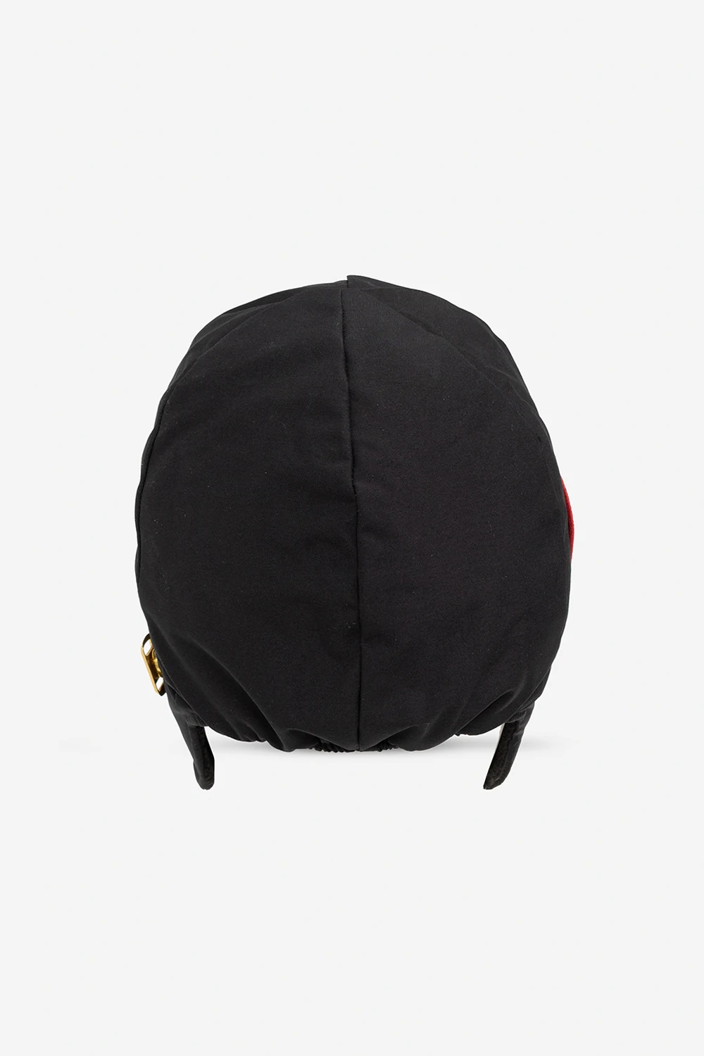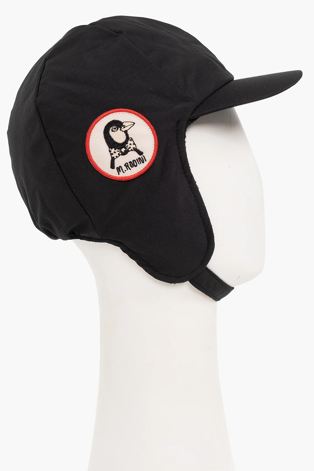 Black baseball cap with earflaps and a logo patch from Mini Rodini. This item is highly breathable and waterproof, made of a 100% recycled polyester creating a functional and heavy-duty shell fabric with a water repellent BIONIC-FINISH® ECO coating.