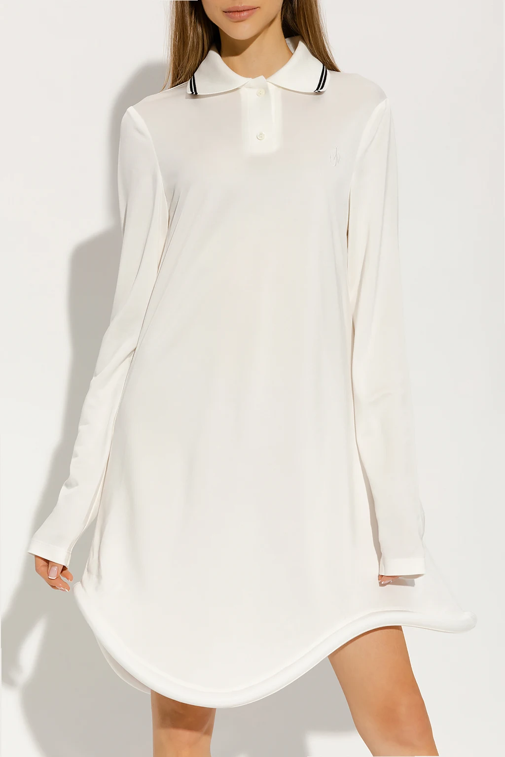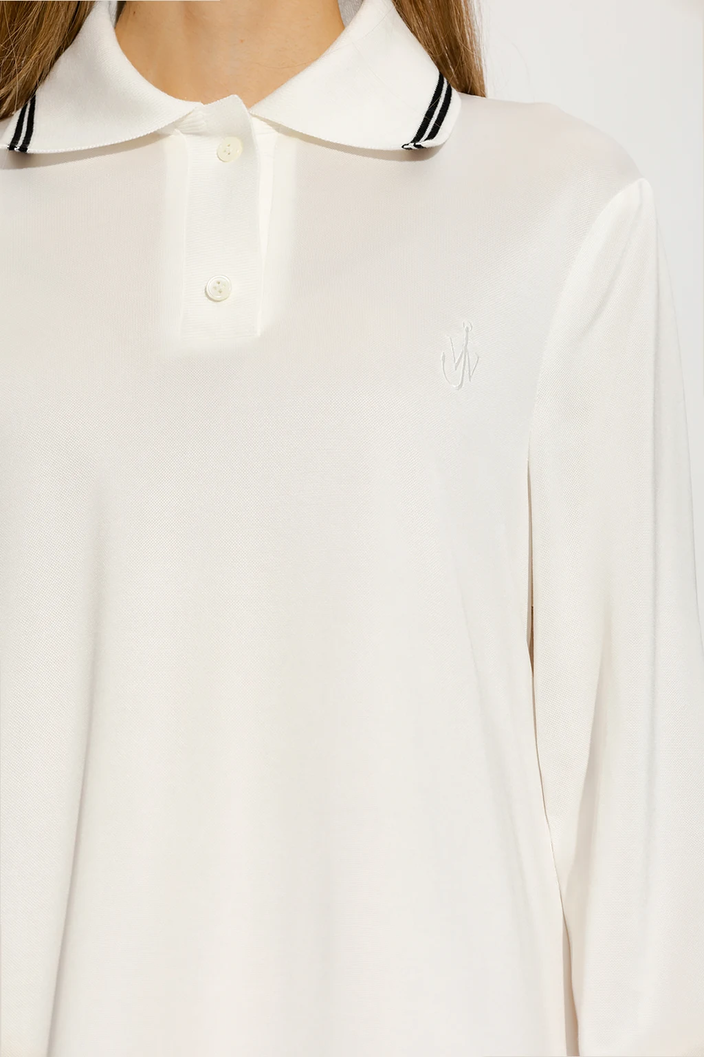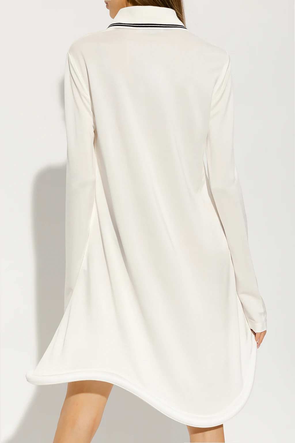 White dress from JW Anderson. Embroidered with a logo pattern, this style features button fastenings to the collar, long sleeves and decorative trimming at the hem.