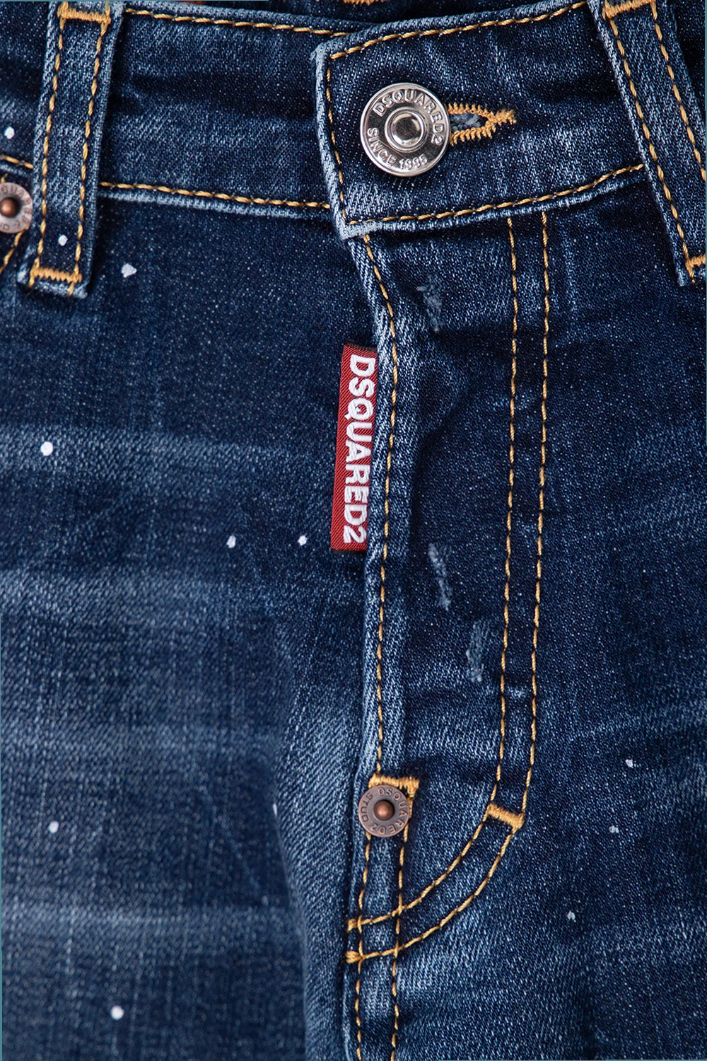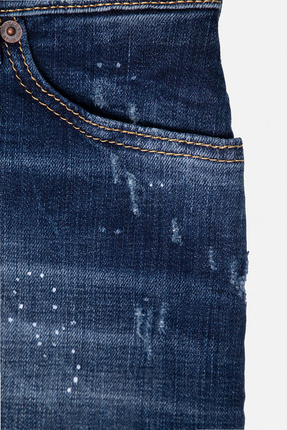 Navy shorts from Dsquared2 Kids. Crafted from cotton, this pair features button fastenings, vintage effect, paint splatter effect and logo patch in red and black at the back.