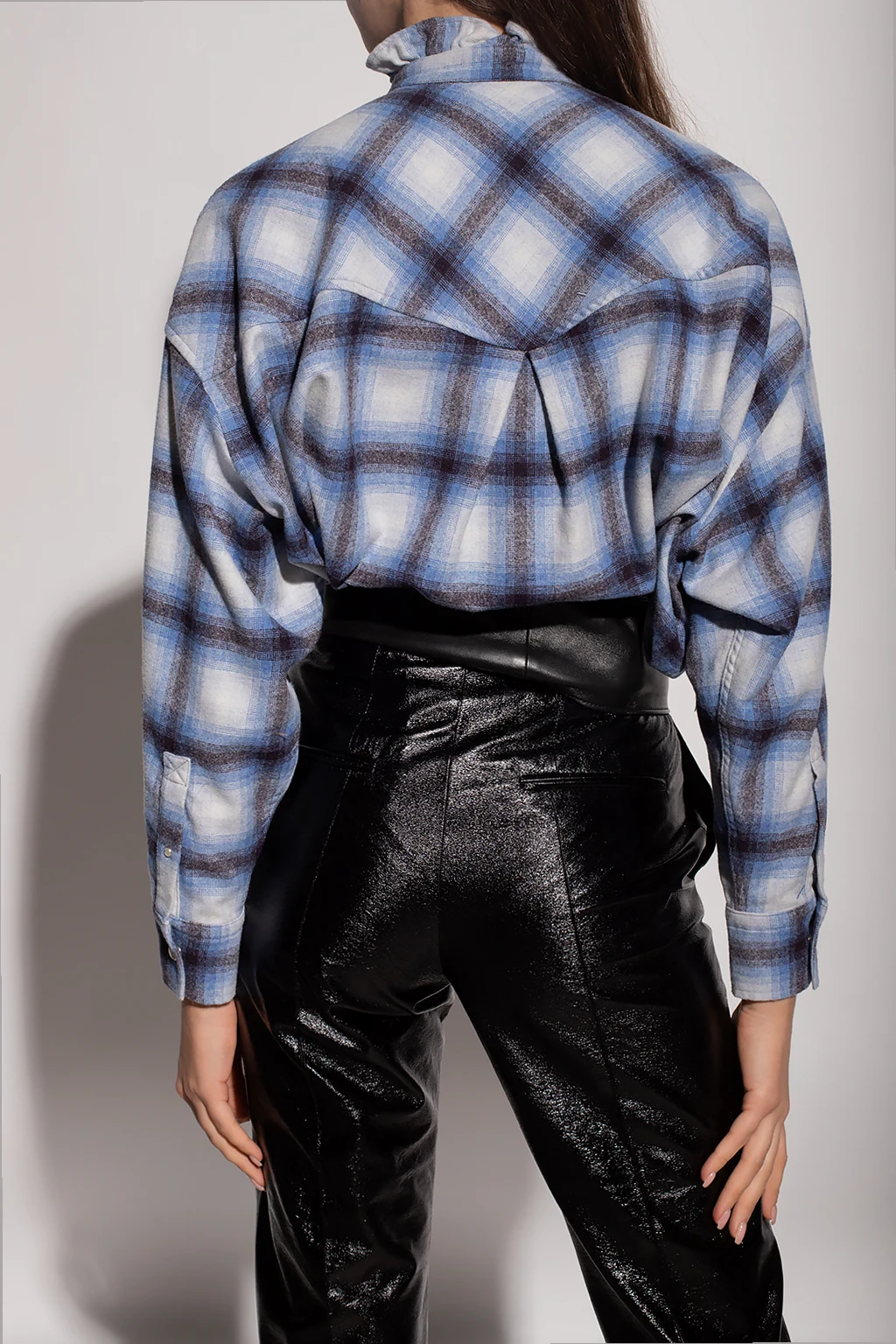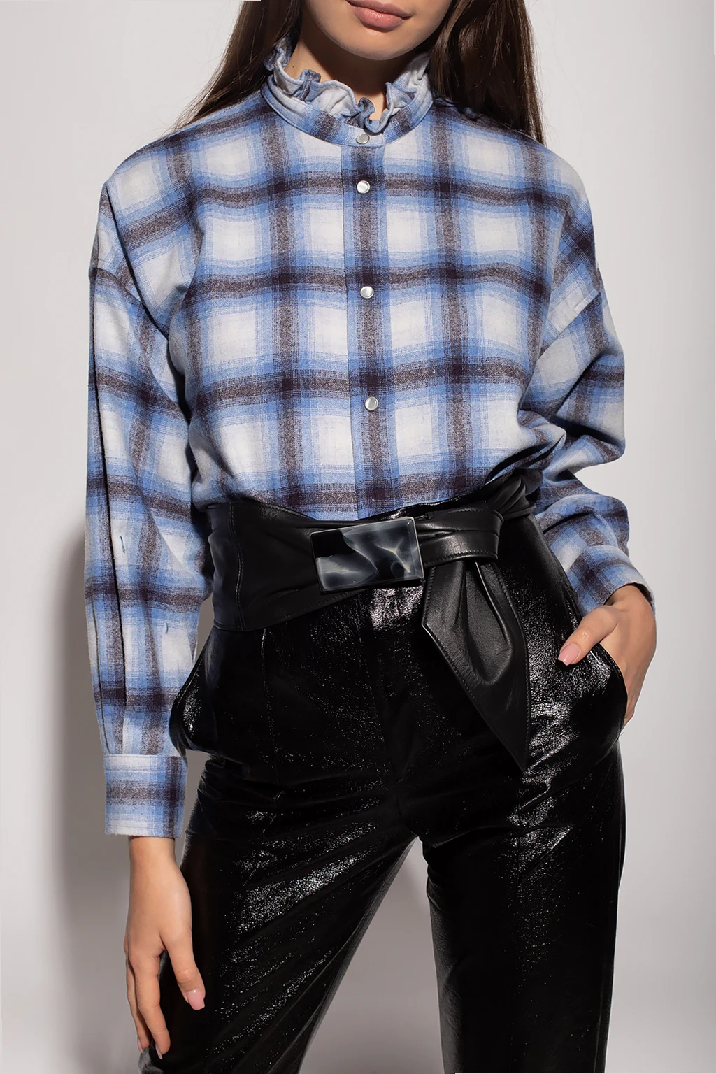 Blue, white and brown shirt with a standing collar from Isabel Marant Étoile. Cut with an oversize silhouette, this style showcases a check pattern, button fastenings, side slits and long sleeves with button cuffs.