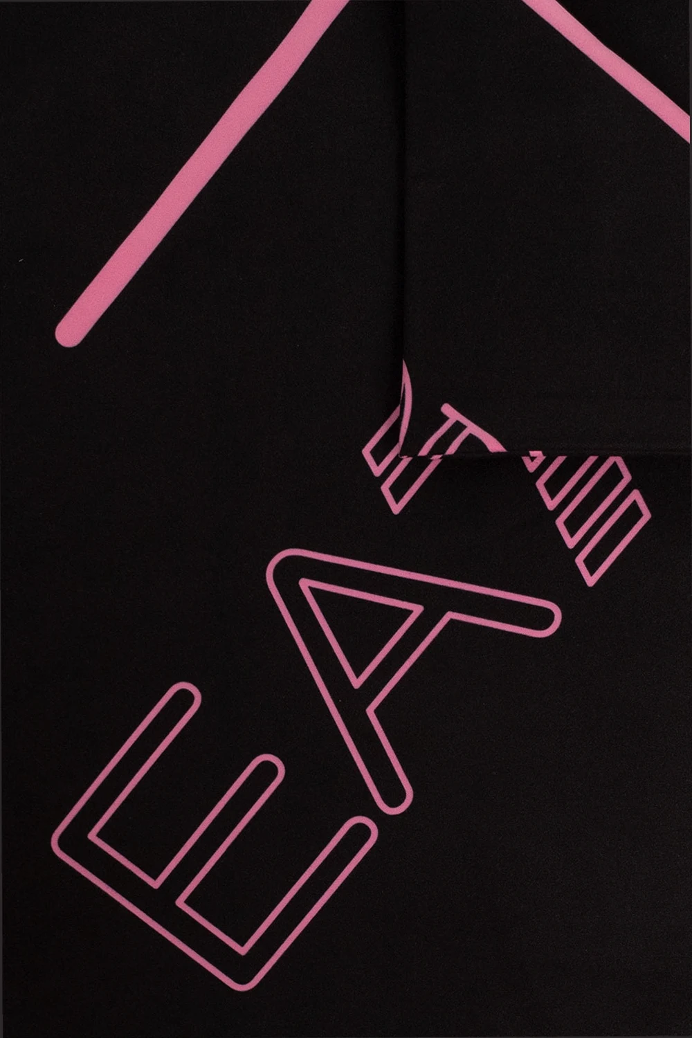 Black towel from EA7 Emporio Armani. Crafted from fast-drying fabric, this item showcases a printed pink logo.