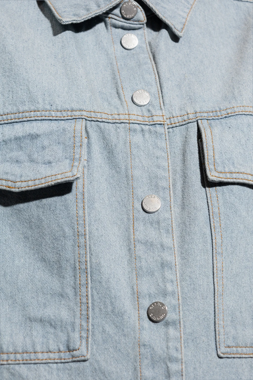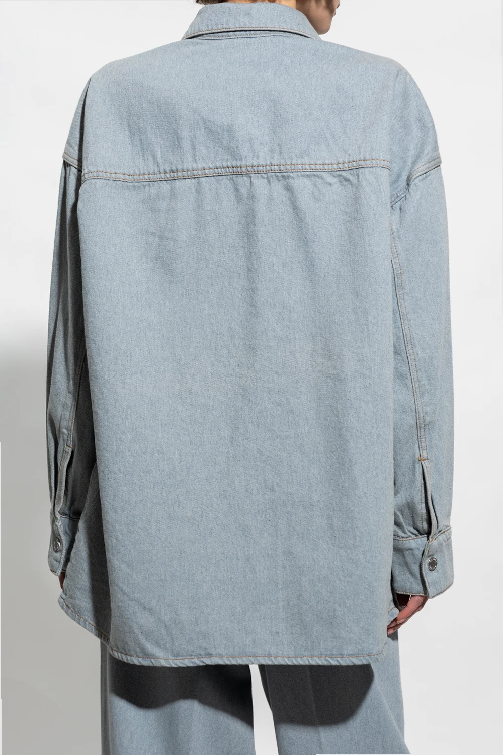 Blue ‘ZeldaGZ’ denim shirt from Gestuz. Cut with an oversize fit, this style fastens with branded silver-tone snaps and features two flapped chest pockets and long sleeves with snap-fastened cuffs.