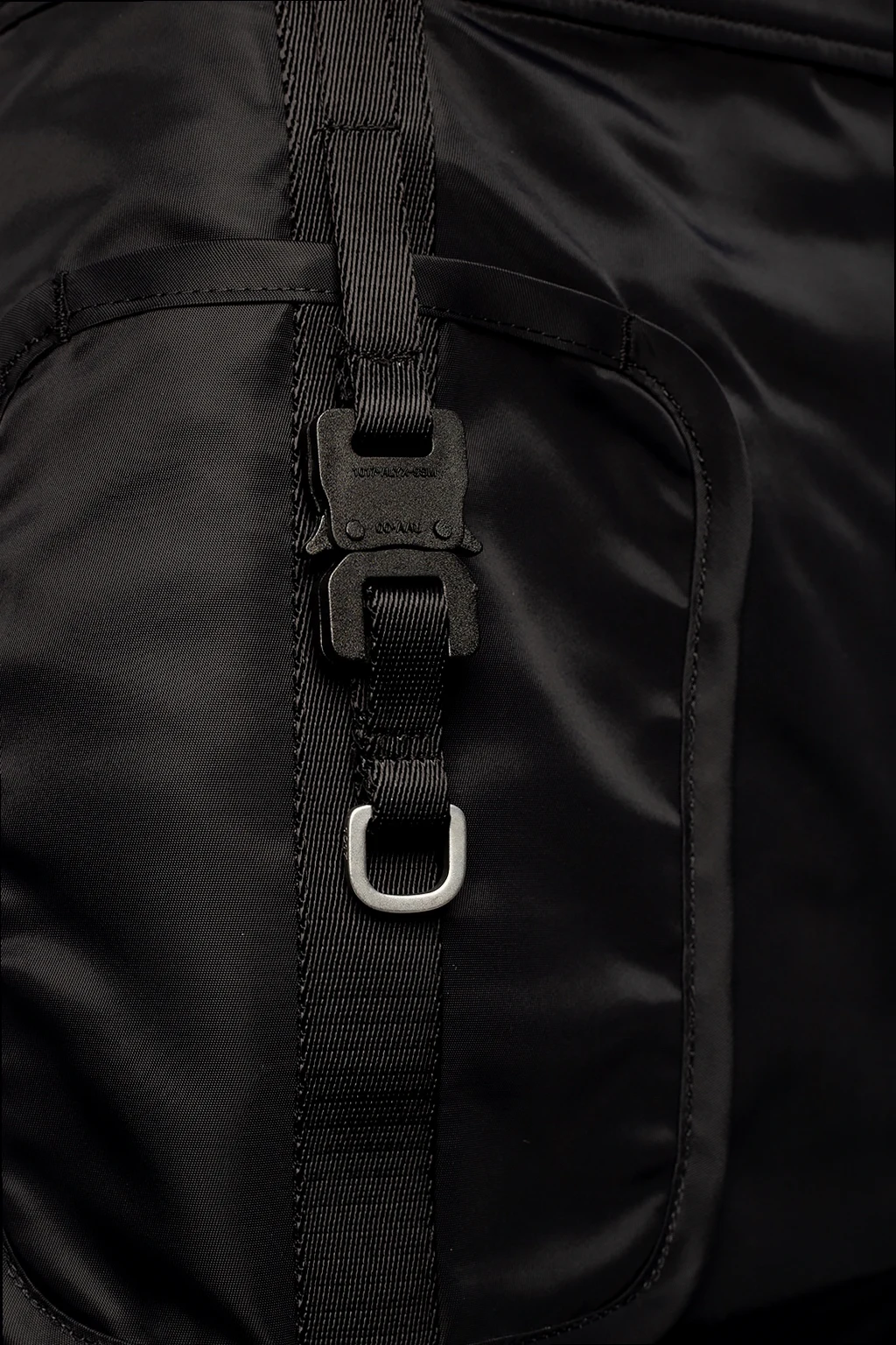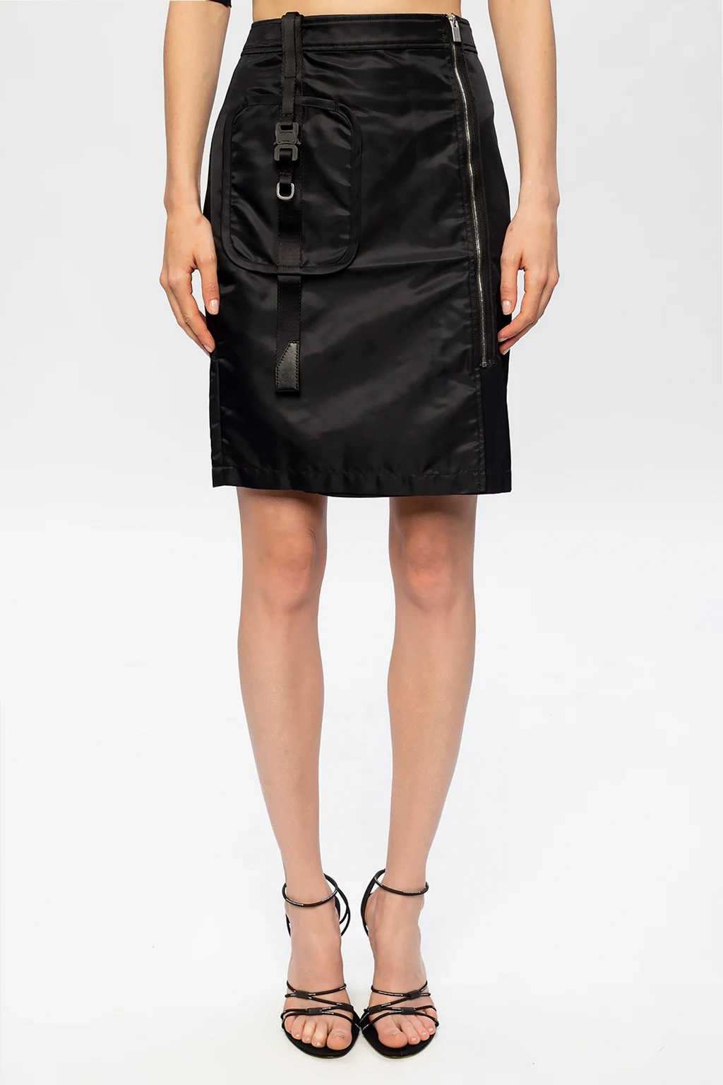 Black skirt from 1017 ALYX 9SM. Featuring a pocket with a black rollercoaster buckle closure that's highly recognisable for the brand, this piece is complete with an asymmetrical zip and button fastenings.