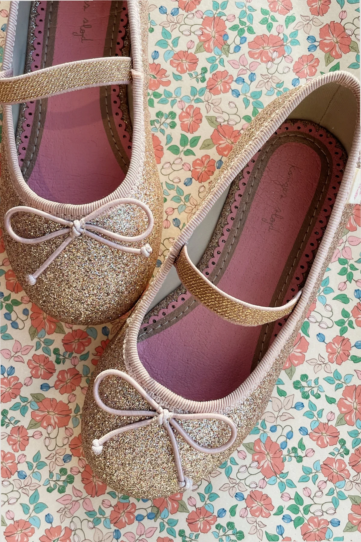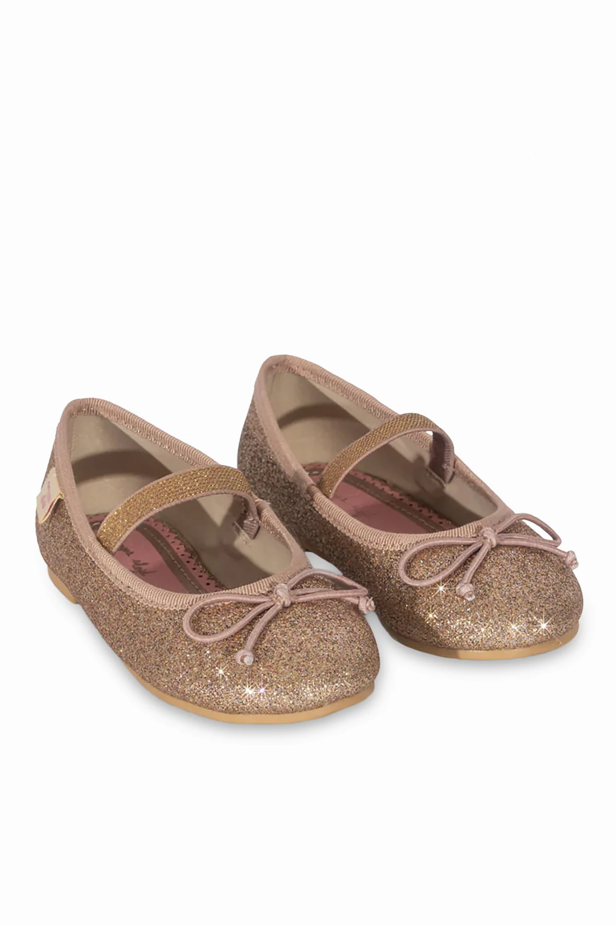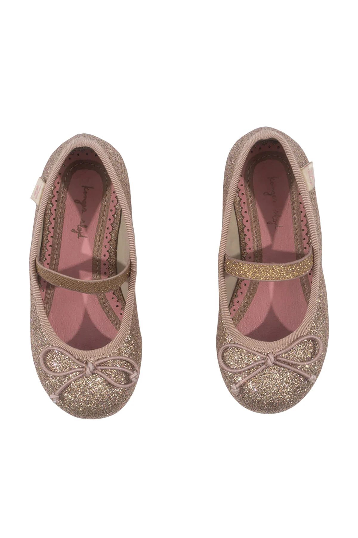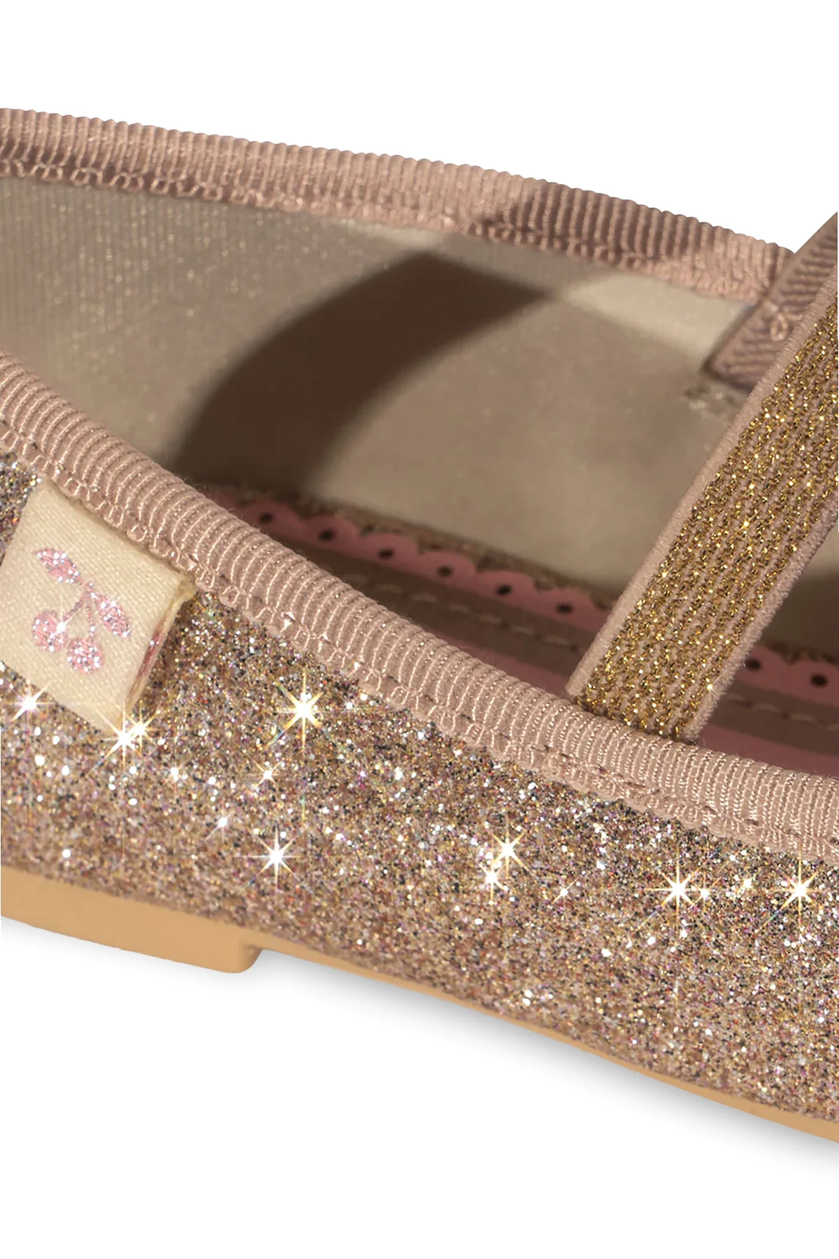 Entdecken Sie die Glitzer-BALLET FLATS aus der exklusiven Kollektion der Marke Konges Sløjd, die seit 2014 mit ihren außergewöhnlichen Designs die Herzen erobert. Diese Kinder-BALLET FLATS sind die Quintessenz von Eleganz und mädchenhaftem Charme, entworfen für kleine Damen.