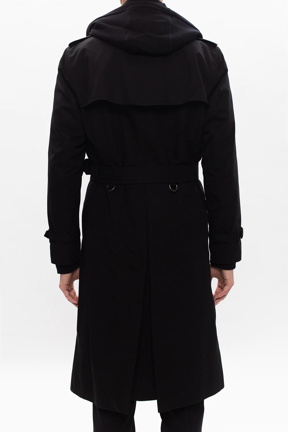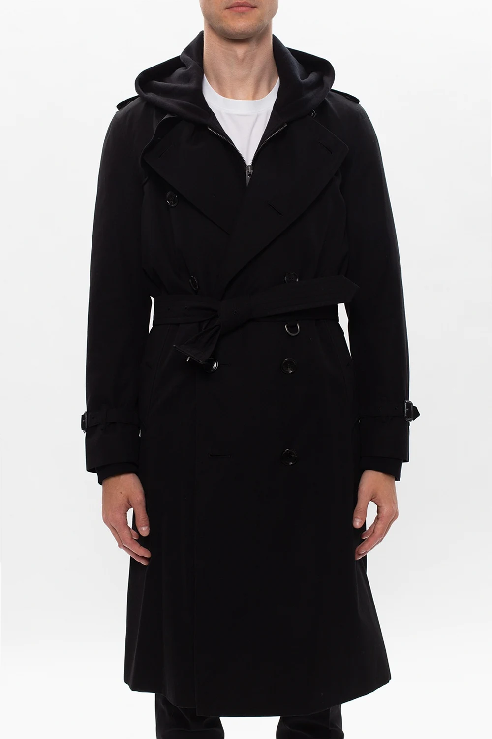 Black ‘Chelsea’ trench coat from Burberry. Crafted from 100% cotton, this double-breasted design has button fastening, buckle belt at the waist, two buttoned pockets and signature check lining. By buying this product, you support responsibly and sustainably grown cotton within the Better Cotton Initiative.