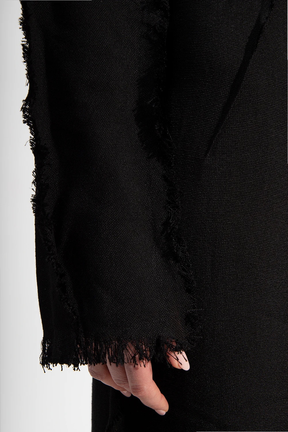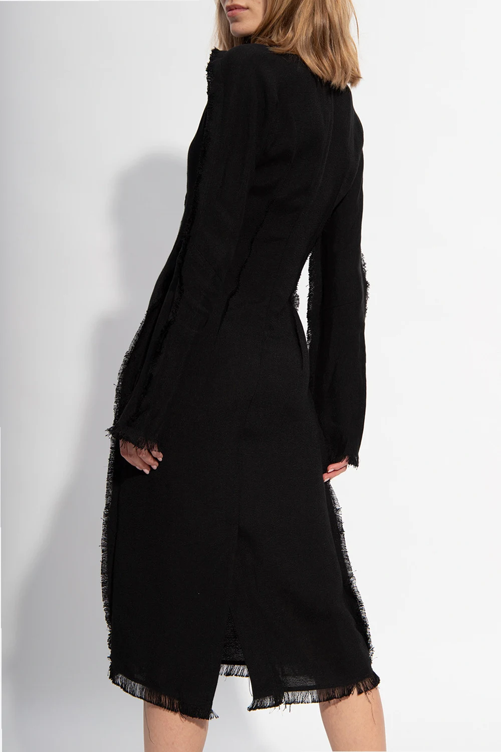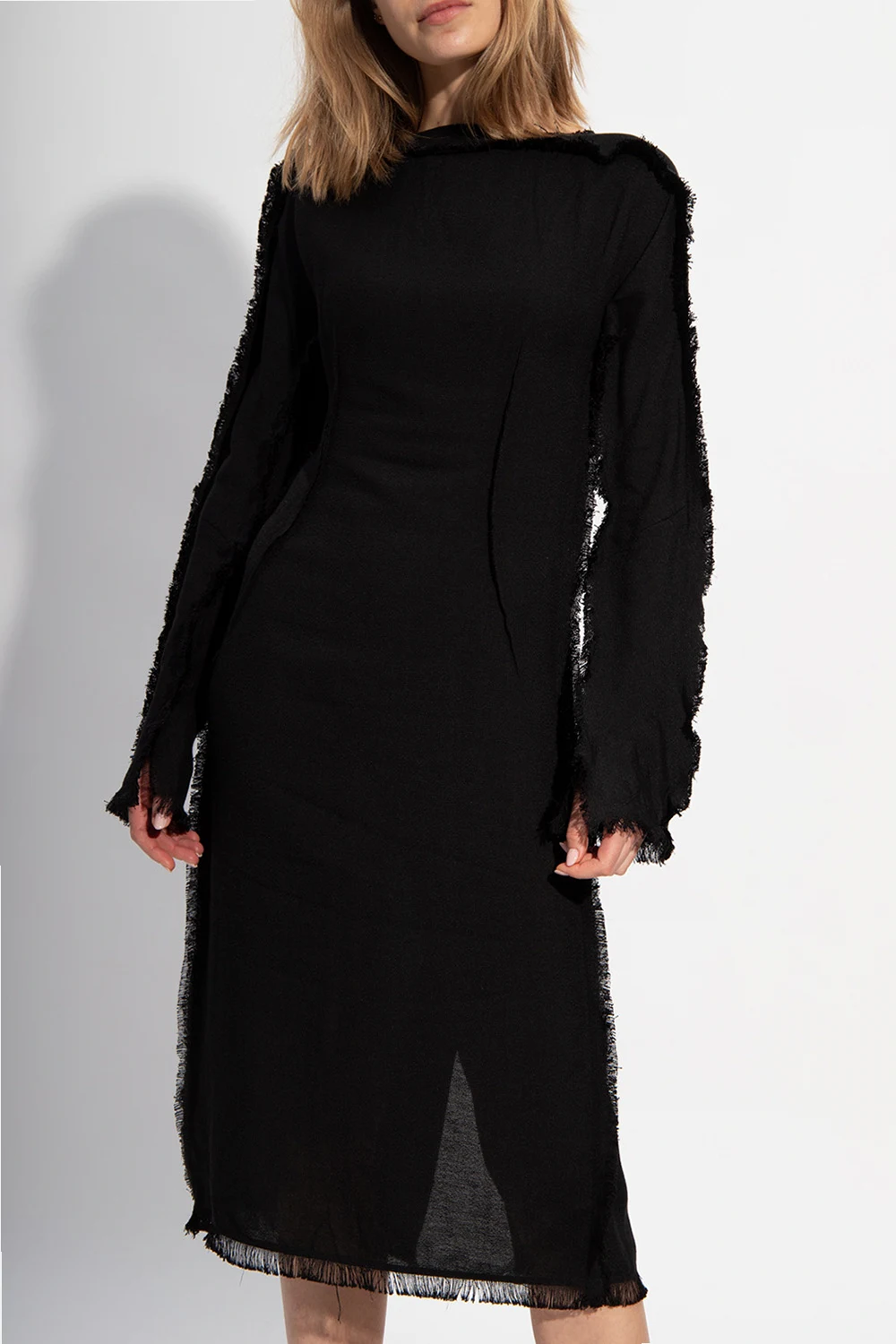 Black dress from Marni. Fastened at the back with a zip and hook, this garment features long sleeves, a fringed hem and a round neck.