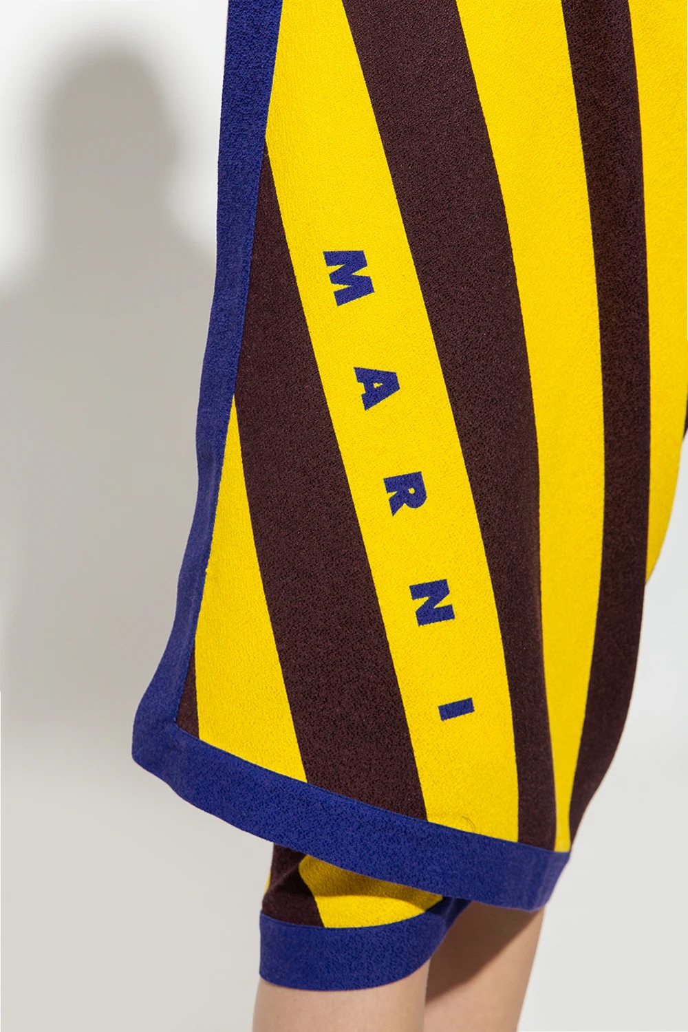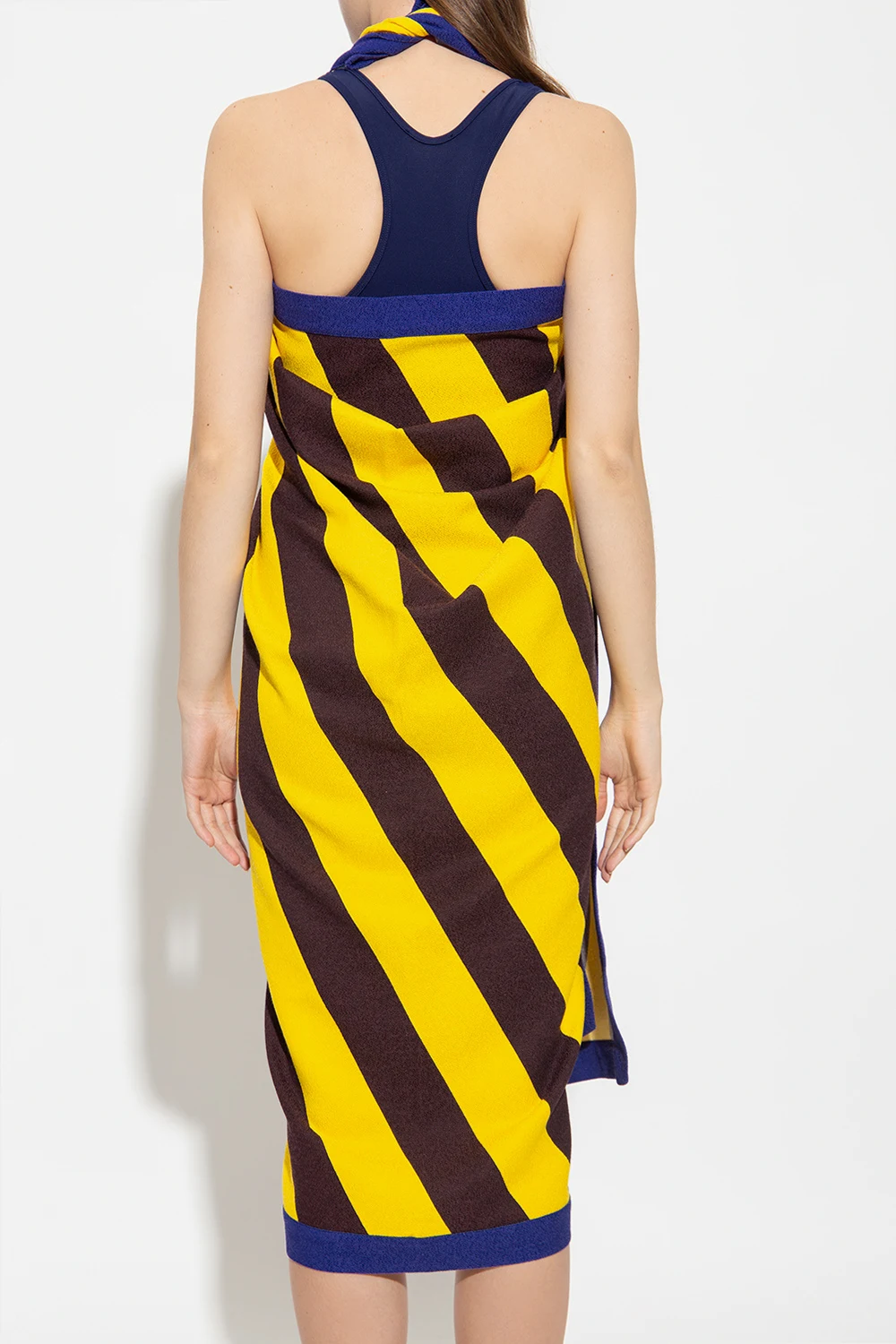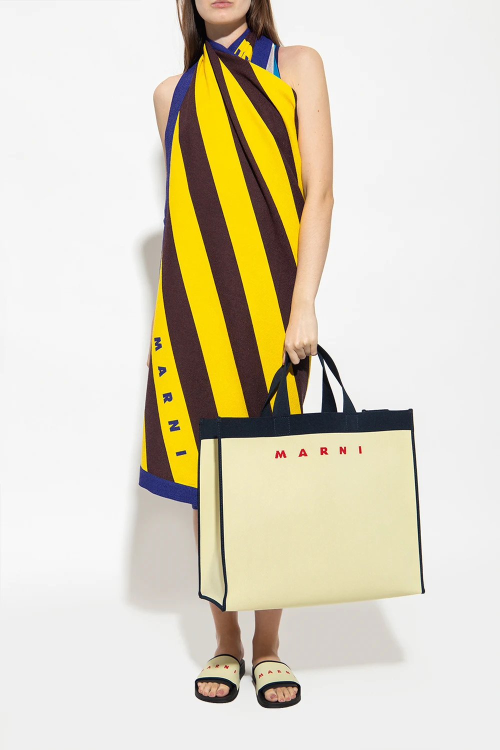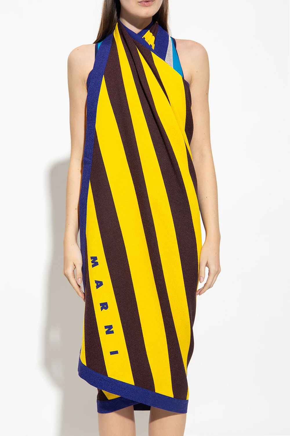 Yellow, brown and blue pareo with a stripe pattern and logo embroidery from Marni.