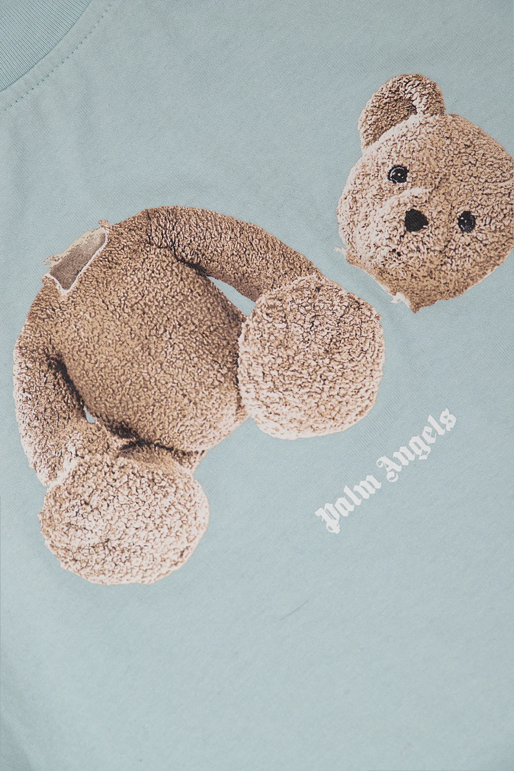 Light blue T-shirt from Palm Angels Kids. Made of cotton, this short sleeve design features the brand’s signature brown teddy bear motif, logo and ribbed crew neck.