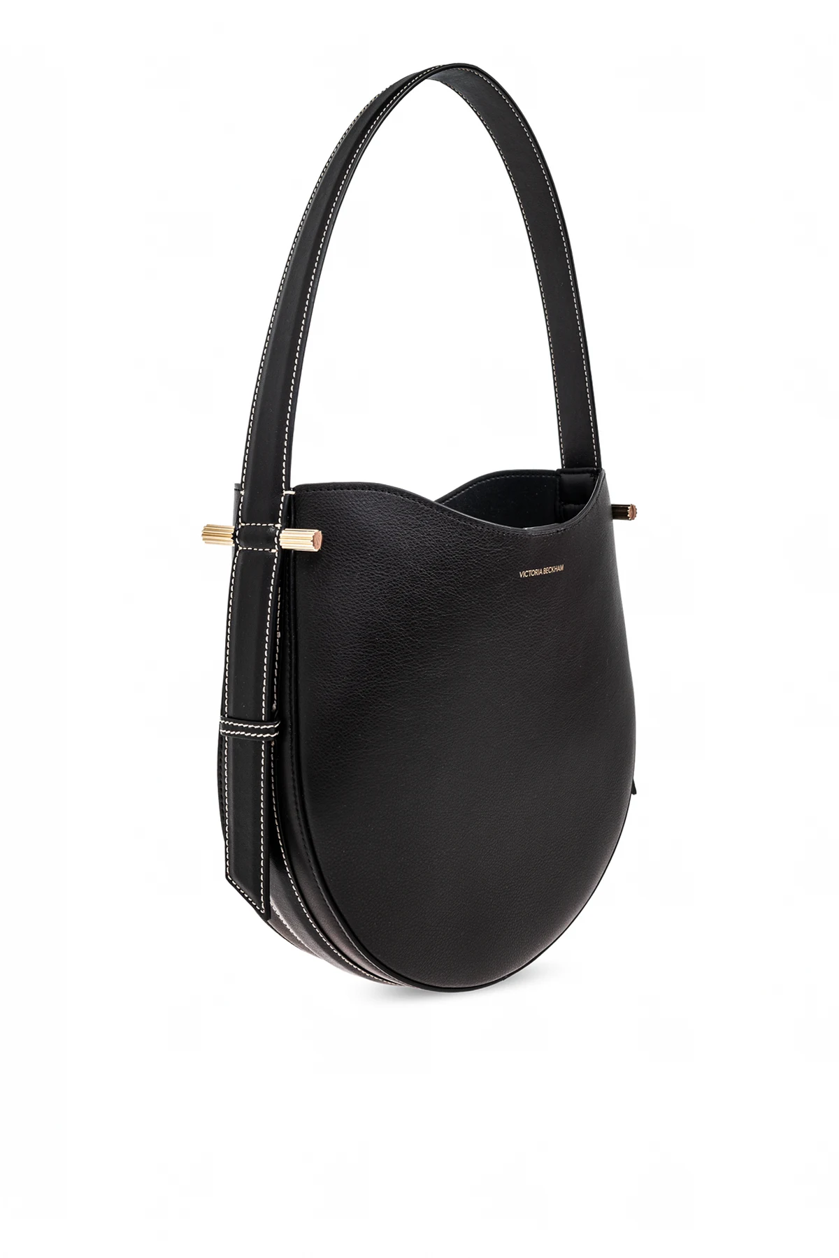 Gefertigt aus hochwertigem glattem Kalbsleder , strahlt die Tasche Luxus aus und garantiert Langlebigkeit über Jahre. Das klassische Schwarz in Kombination mit goldenen Details, einschließlich des dezenten Logos "VICTORIA BECKHAM", verleiht ihr Prestige und Vielseitigkeit.