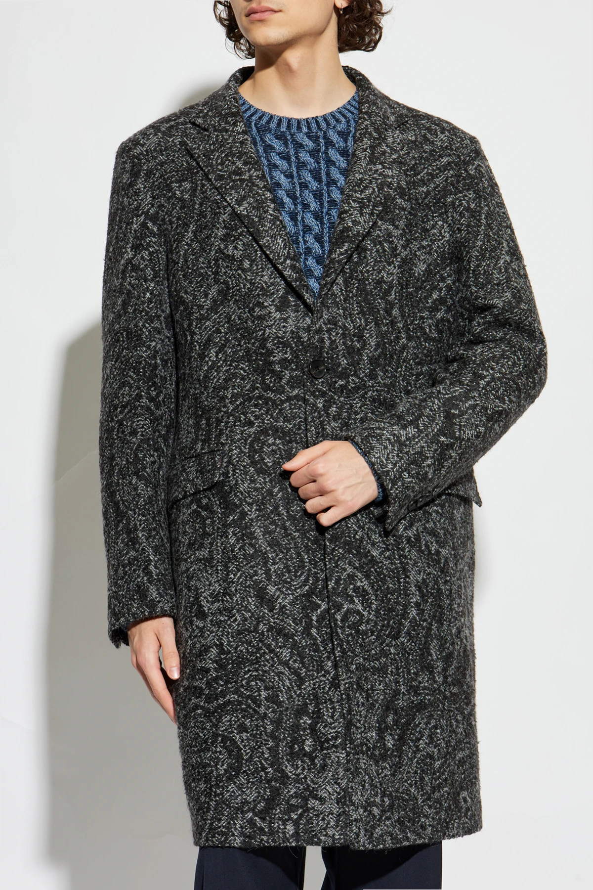 Das einzigartige Melange-Muster mit dezentem Paisley-Motiv, inspiriert von der indischen Kultur, betont die prestigeträchtige Familientradition des italienischen Modehauses Etro. Zwei große Knöpfe in Stofffarbe sowie symmetrische Pattentaschen machen den Mantel zu einer äußerst durchdachten Wahl für die Übergangssaison.