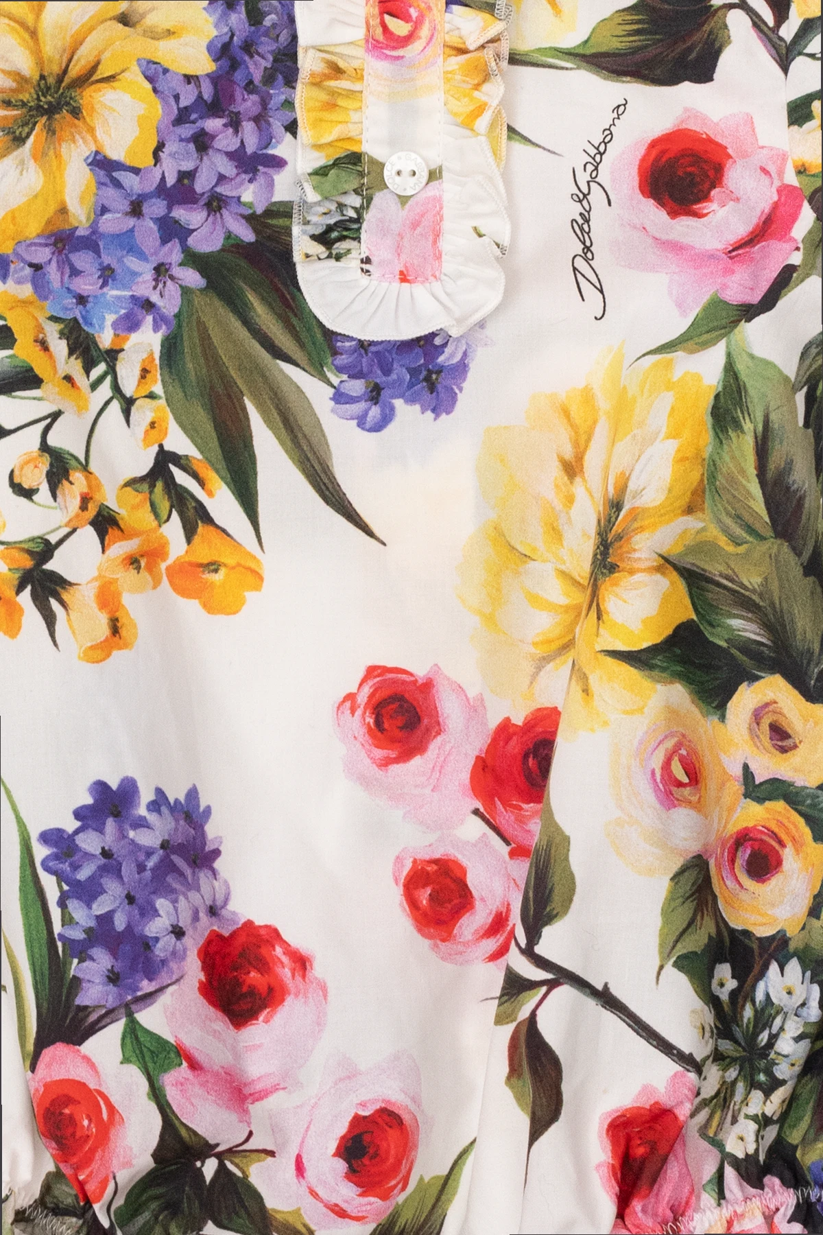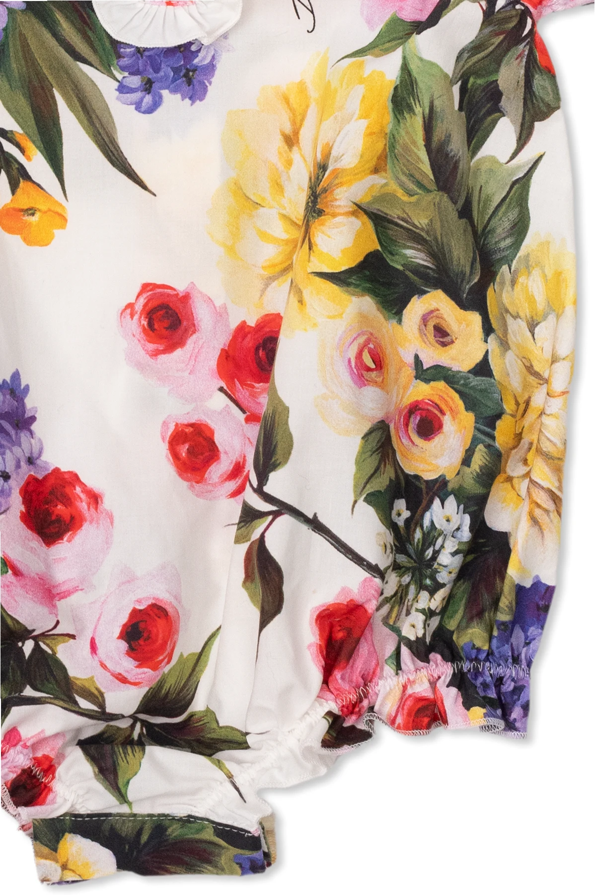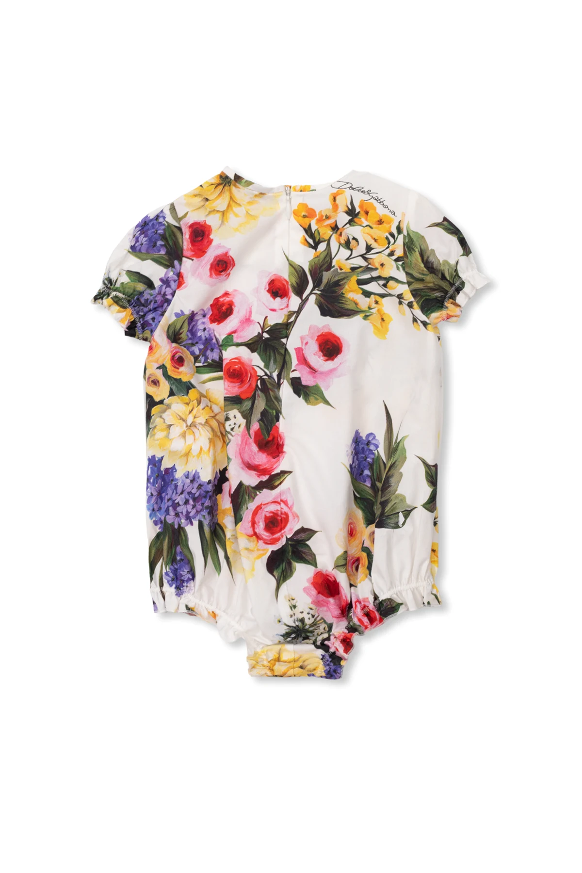 White body from Dolce & Gabbana Kids. Made of cotton, this design features a concealed back zip, snap fastenings, multicolored floral pattern, logo, decorative buttons, round neck and ribbed trims at the hem and cuffs.
