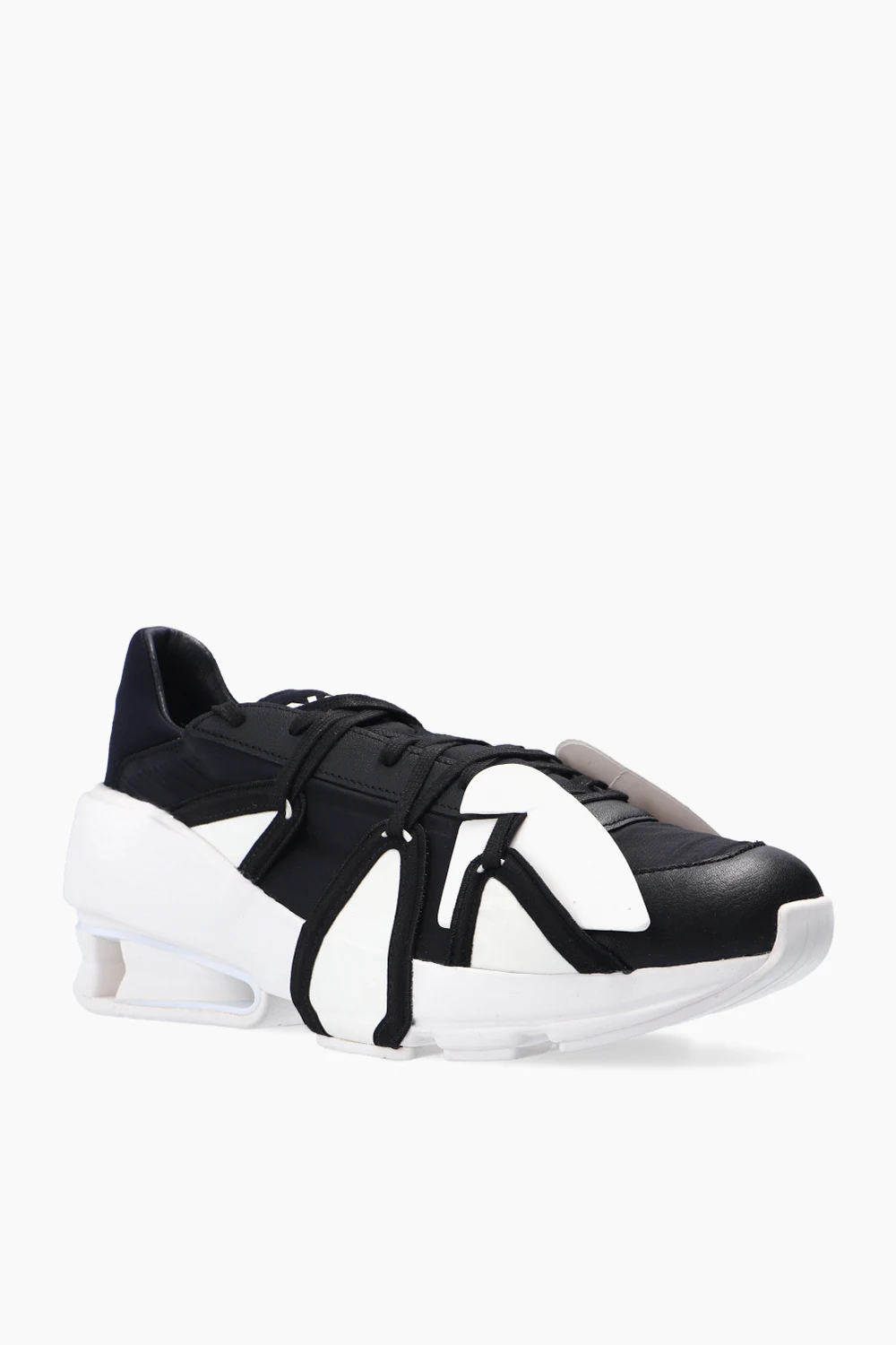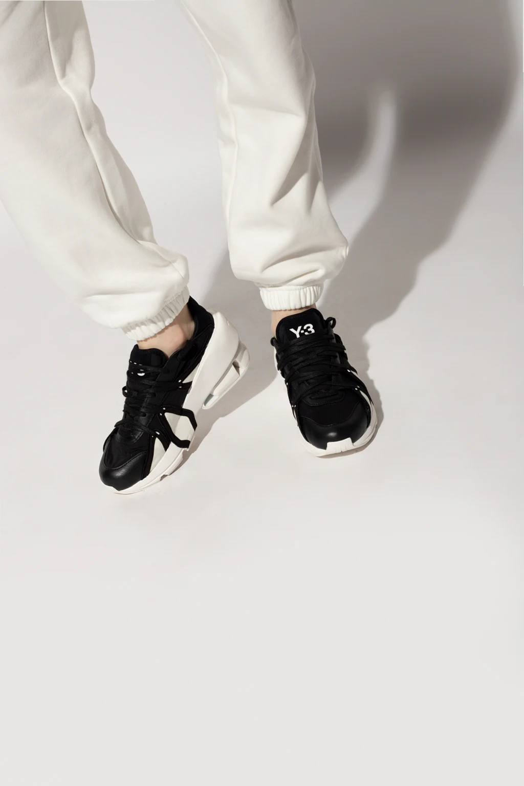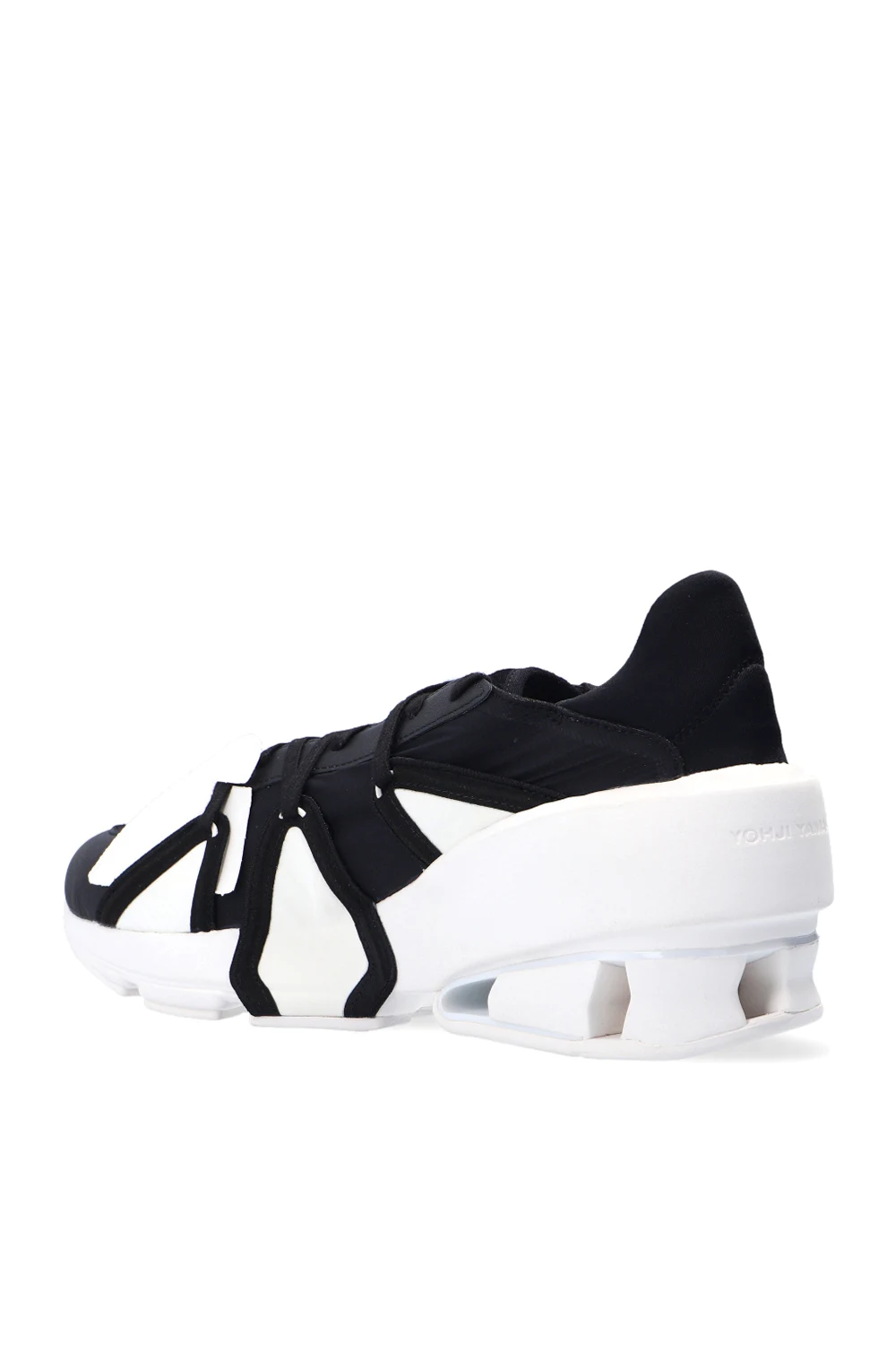 Black ‘Sukui III’ sneakers from Y-3 Yohji Yamamoto. Trimmed with leather, this lace-up design features a white logo on the tongue as well as Twinstrike split midsole and outsole in white rubber.