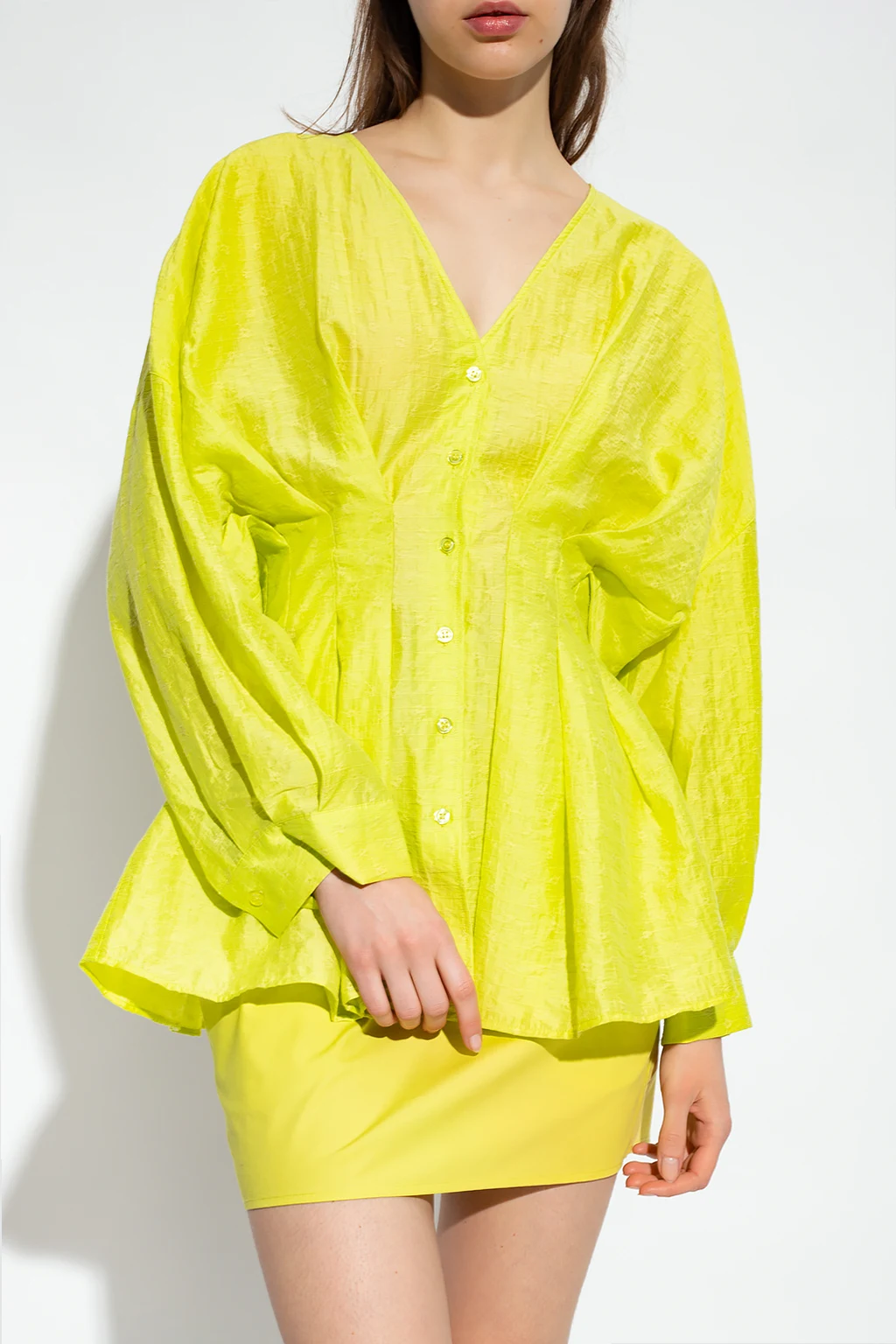 Green ‘Engla’ top from Samsoe Samsoe. Fastened with buttons, this V-neck design has long sleeves with buttoned cuffs.