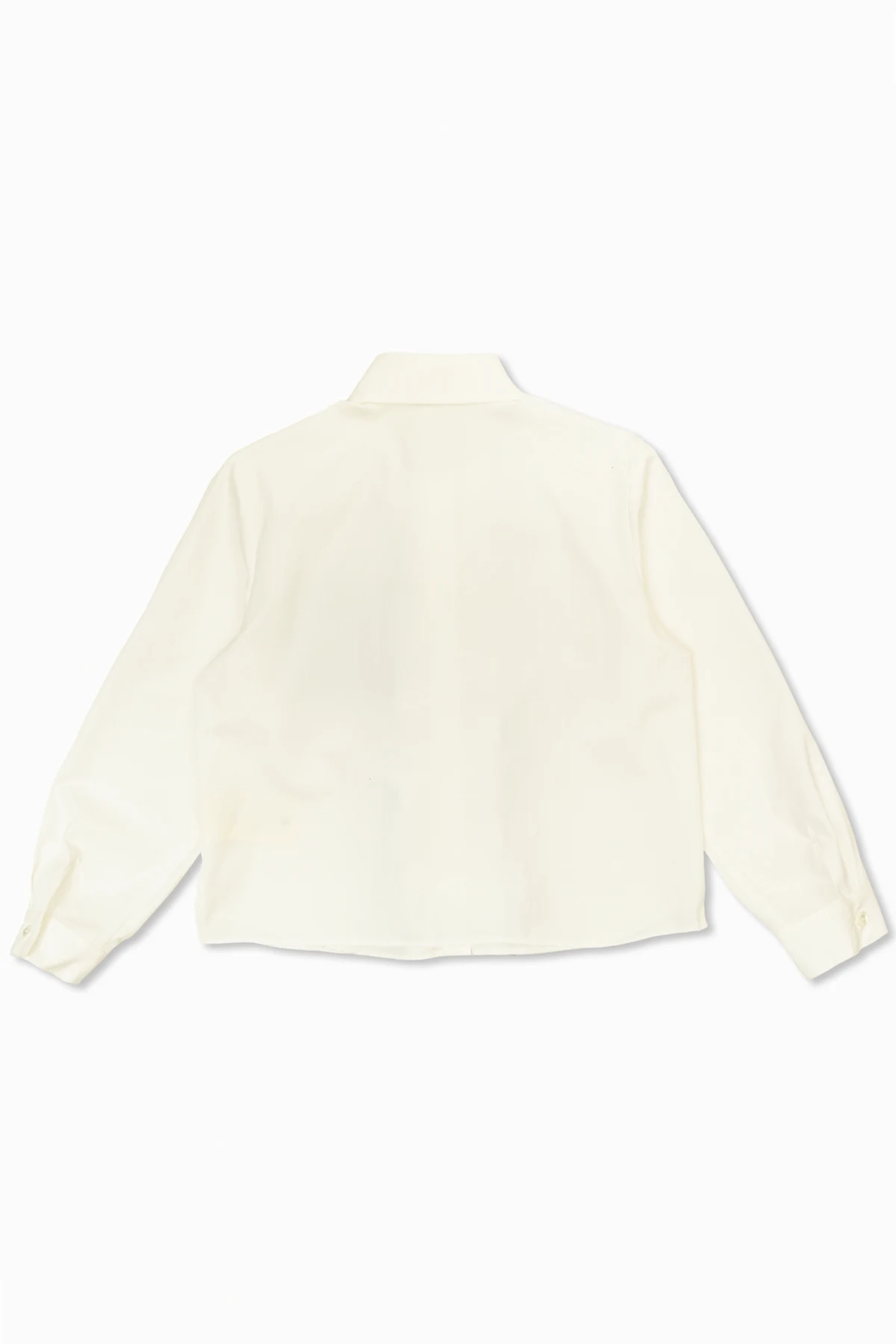 Die Bluse mit langen Ärmeln ist mit einem klassischen Kragen und Manschetten mit Knöpfen versehen, die harmonisch in das Gesamtdesign integriert sind. Durch die Knopfleiste, deren Knöpfe farblich dezent auf das weiße Material abgestimmt sind, ist die Bluse sowohl funktional als auch ästhetisch durchdacht.