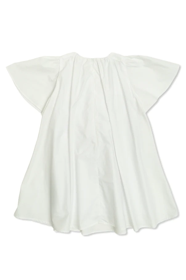 Das Kleid mit dekorativen Knöpfen verkörpert die Quintessenz raffinierten Stils in reinem Weiß. Die leicht ausgestellte Silhouette mit weiten Schmetterlingsärmeln vereint mühelos Lässigkeit mit subtiler Eleganz. Der glatte Stoff, der hochwertigste Baumwolle ähnelt, bietet ein angenehmes Hautgefühl und einen exklusiven, leicht festen Griff, der den edlen Charakter des Produkts unterstreicht.