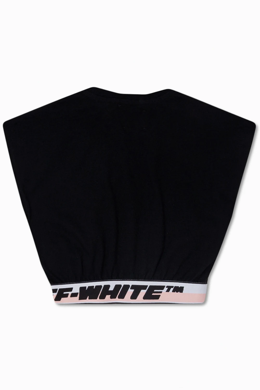 Short, black sleeveless top from Off-White Kids. Made of cotton, this round neck design features a logo embroidery in white and pink.