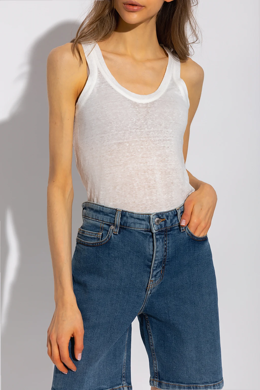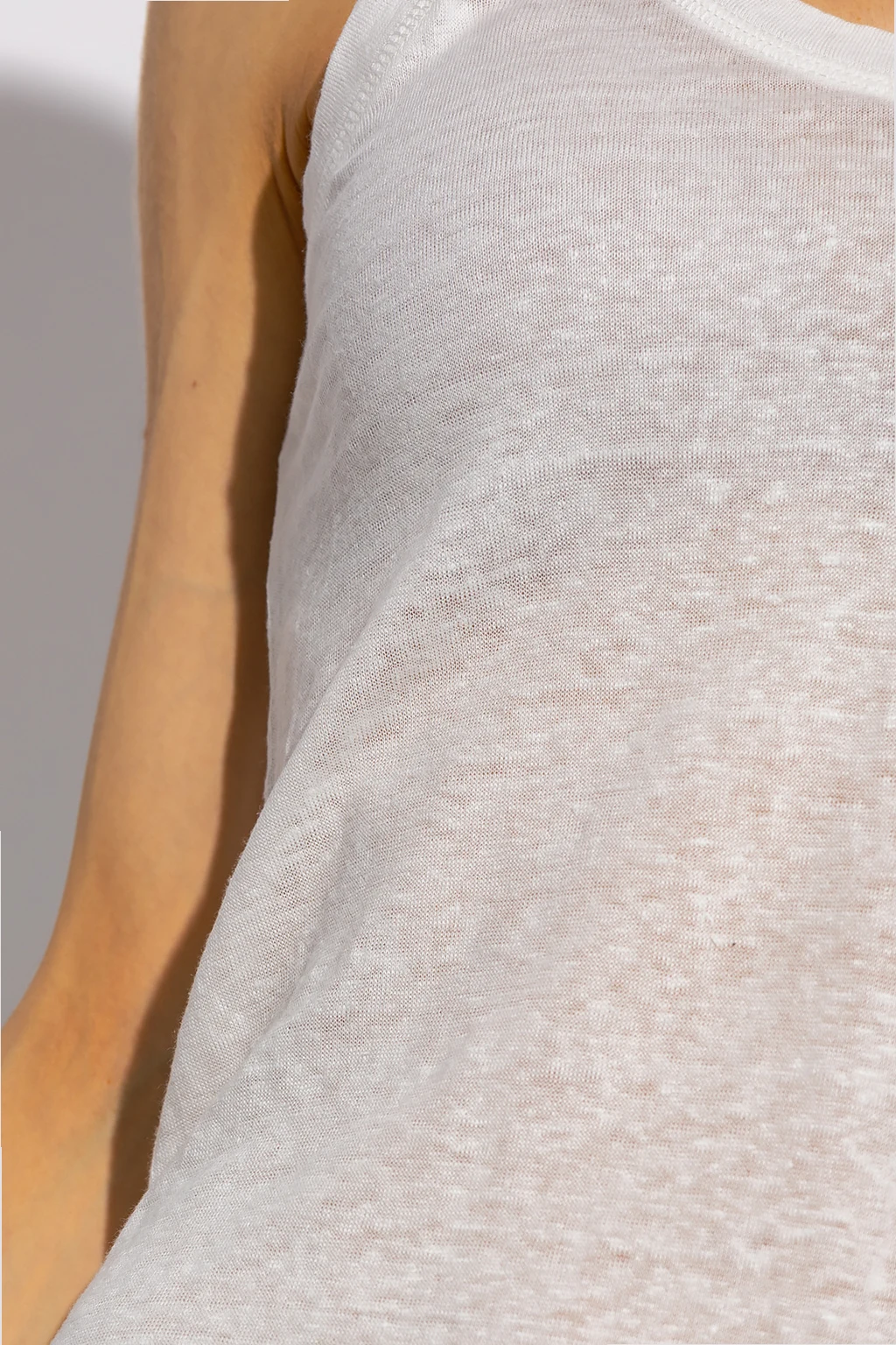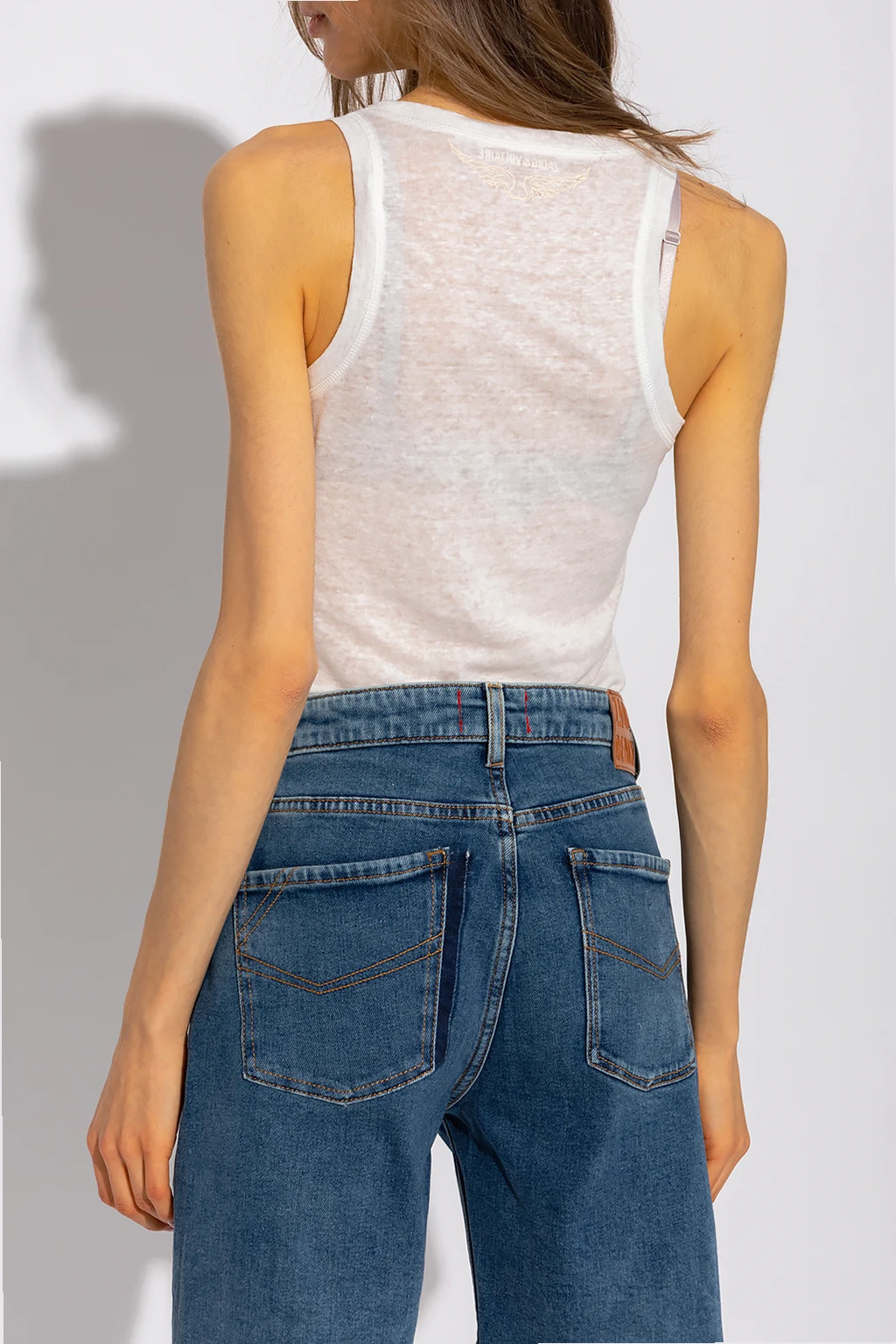 Cream ‘Dean’ sleeveless top from Zadig & Voltaire. Made of linen, this round neck is decorated with a logo print.