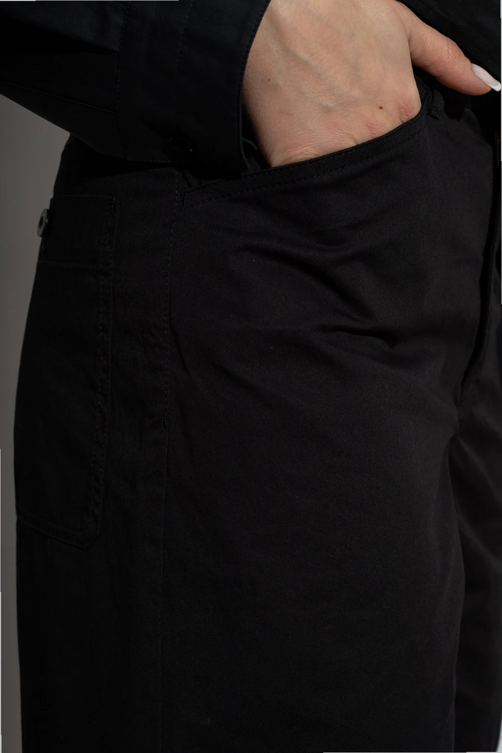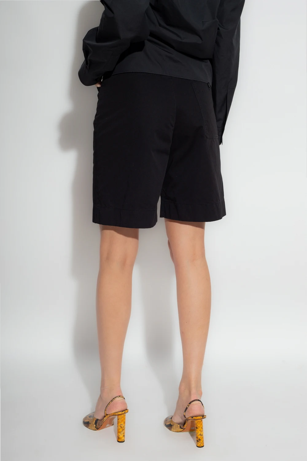 Black shorts from Lemaire. Made of cotton, this design features a zip and button closure, three slip pockets, one buttoned back pocket and wide legs.