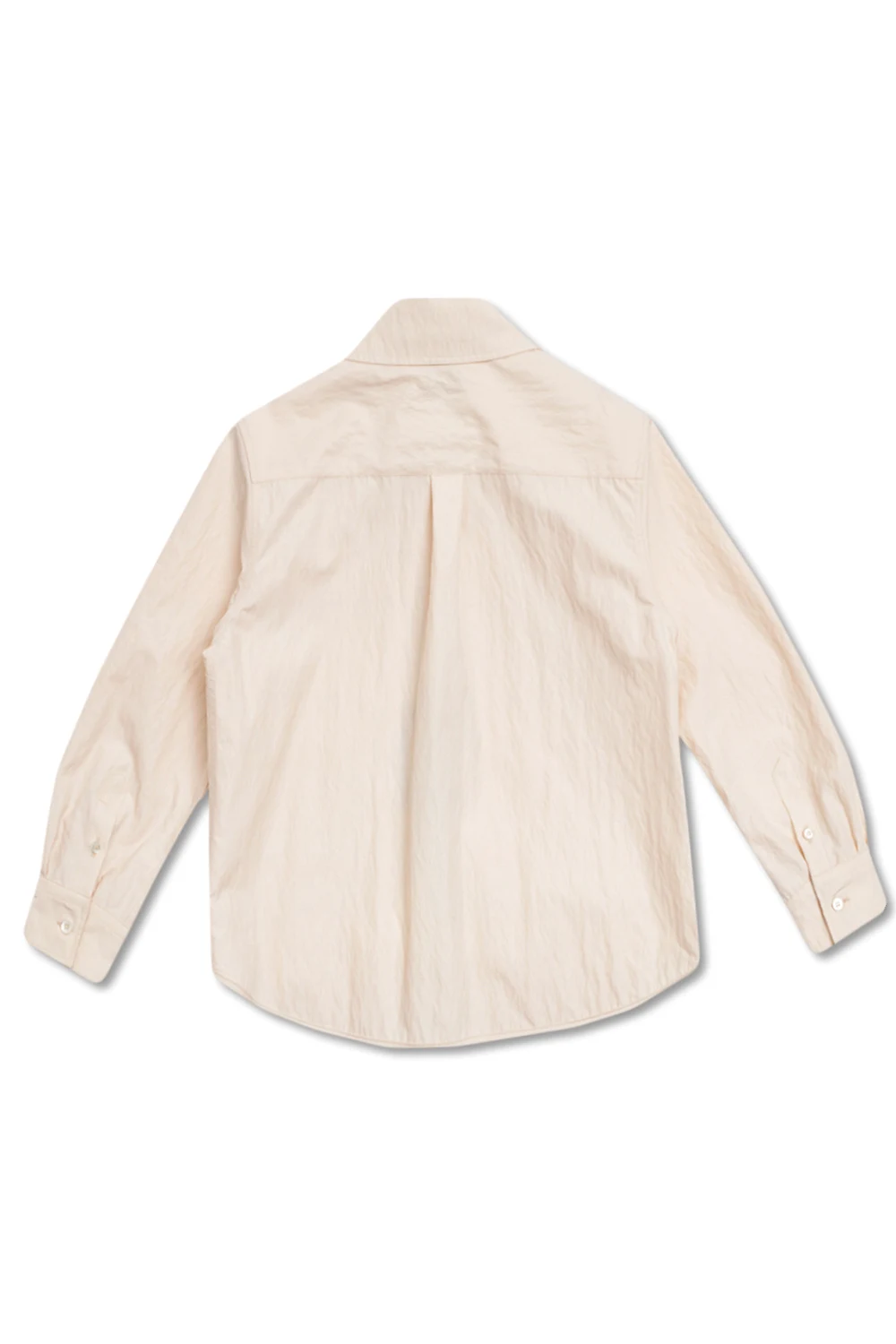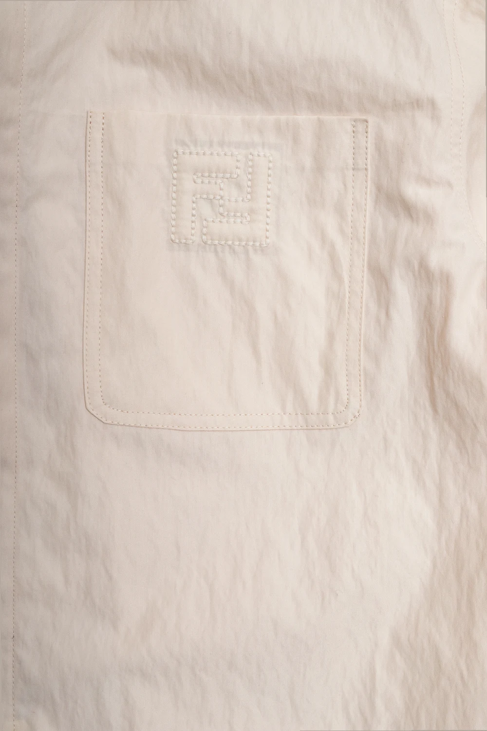 Cream shirt from Fendi Kids. Made of textured cotton gabardine, this garment features buttons with a concealed placket, embroidered FF monogram, two slip pockets, one buttoned flap pocket and long sleeves with button cuffs.