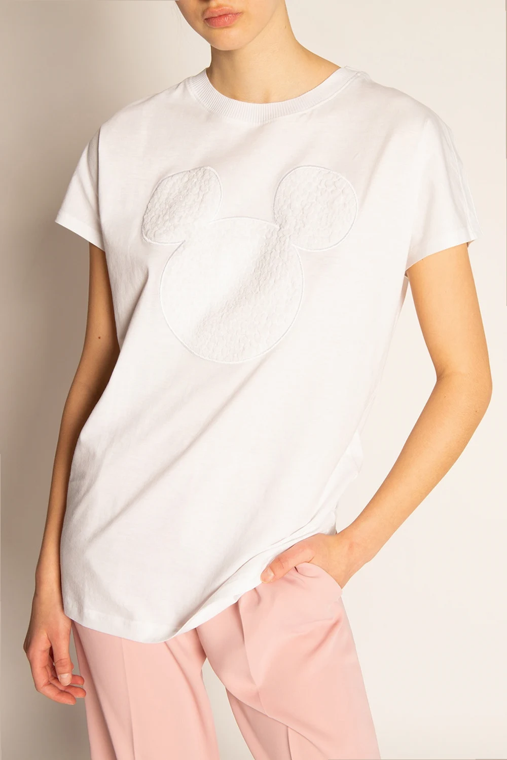 White crewneck T-shirt from Iceberg. Made of cotton, this design is decorated with a Mickey Mouse motif.