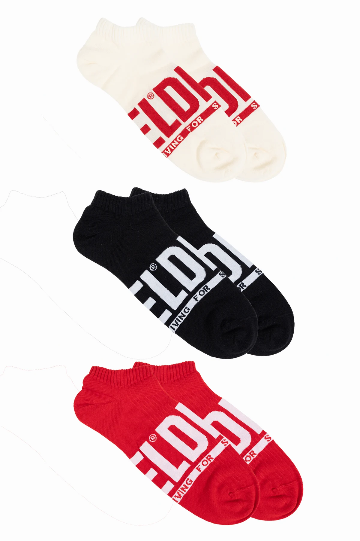 Wir präsentieren Ihnen das exklusive Dreierpack Socken `SKM-GOST-THREEPACK` vom renommierten Designer Diesel , welches die Funktionalität von Sportbekleidung mit einem unverwechselbaren Stil vereint. Jedes Paar Socken, erhältlich in den Farben Creme, Rot und Schwarz, wurde mit dem Ziel des maximalen Komforts und eines raffinierten Aussehens entworfen. Die kontrastierenden Farben im Bereich des Fußes und der Knöchel, kombiniert mit dem deutlichen, gut sichtbaren Designerlogo, verleihen diesem Set einen einzigartigen Charakter.
