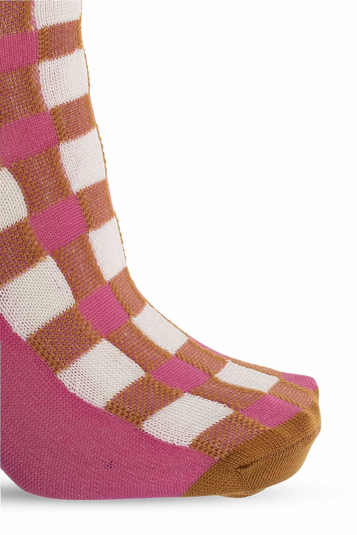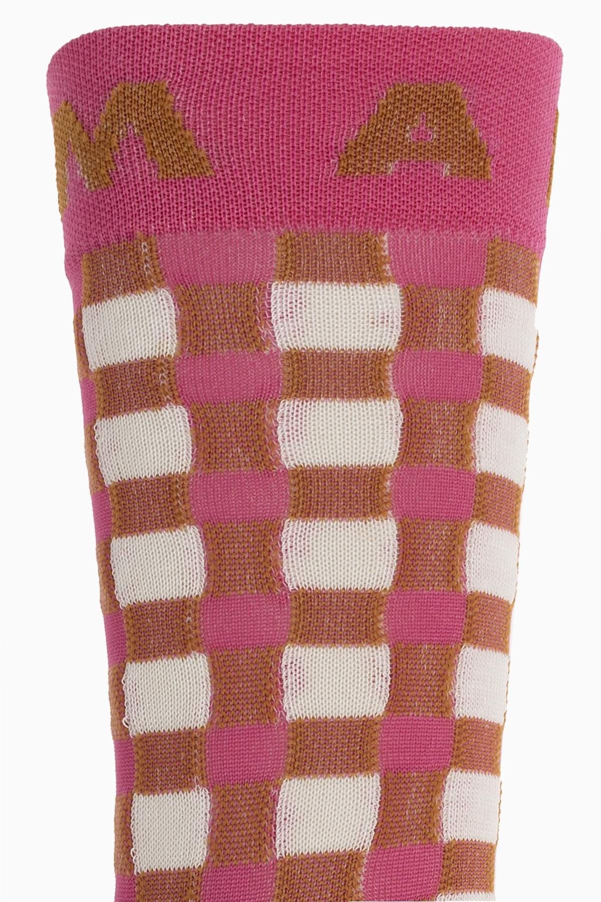 Brown, pink and white socks from Marni. Made from a cotton blend, this pair features a check pattern and a logo.