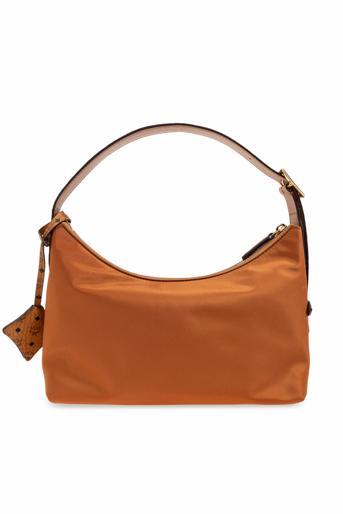 Wir präsentieren die Umhängetasche 'Aren Small' der renommierten deutschen Marke MCM, deren Geschichte bis ins Jahr 1976 in München zurückreicht. Diese elegante Tasche in einem edlen Braunton ist aus hochwertigem Nylon gefertigt und bietet Haltbarkeit sowie einen subtilen Glanz.