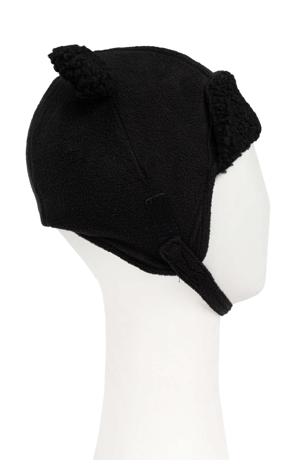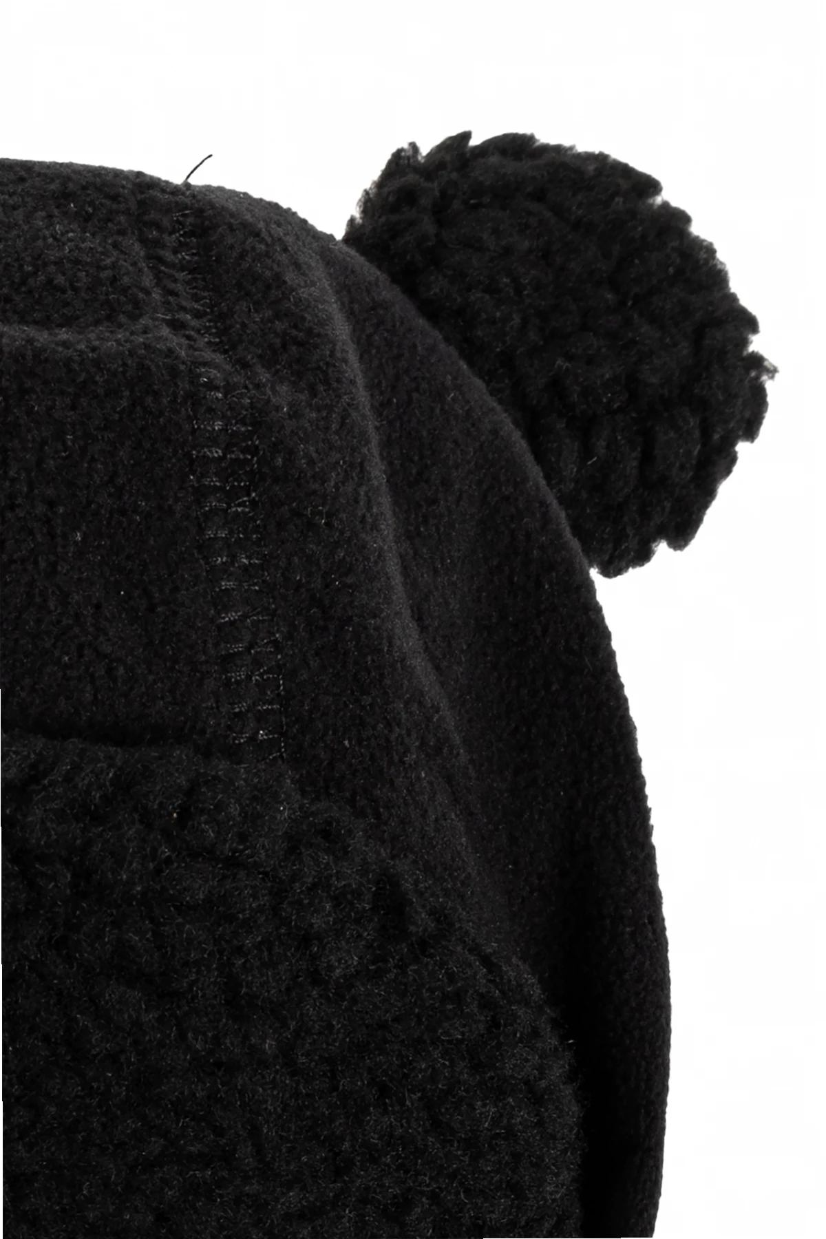 Die Mütze besteht aus warmem, weichem Material - 100% recyceltem Polyester, was das Engagement der Marke für den Umweltschutz unterstreicht. Die Ohrenschützer und die Vorderseite der Mütze sind mit einer zusätzlichen Schicht aus einem lammfellähnlichen Material versehen, was zusätzlichen Komfort und Wärme bietet. Die einheitliche schwarze Farbe macht das Produkt elegant und leicht an verschiedene Stylings anpassbar.