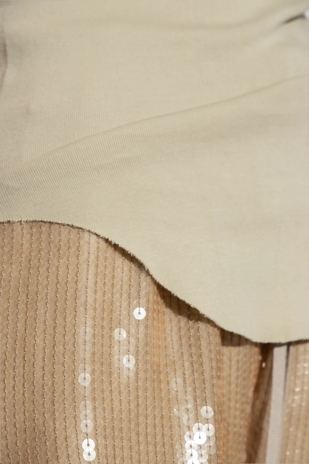 Greyish cream top from Rick Owens DRKSHDW. Made of cotton, this style features a raw-trimmed hem and a black logo appliqué sewn-on inside.