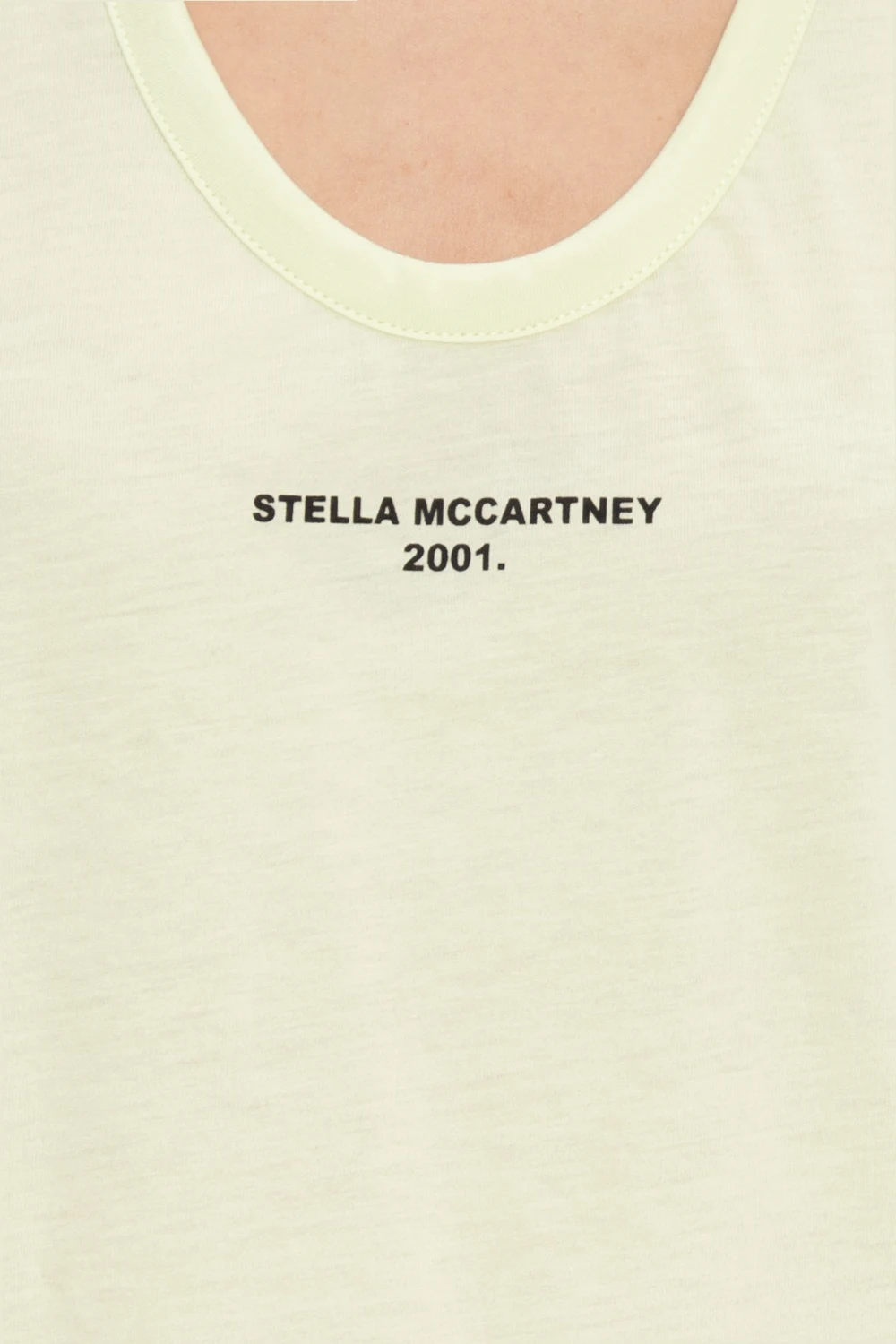 Yellow sleeveless T-shirt from Stella McCartney. Made of cotton, this design features a printed logo pattern in black and a ribbed round neck.