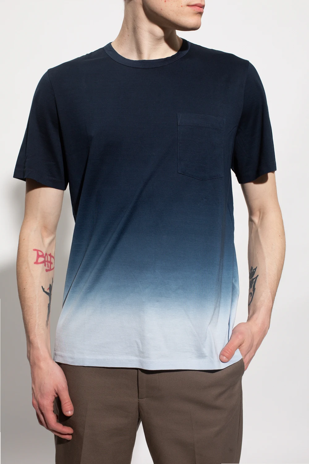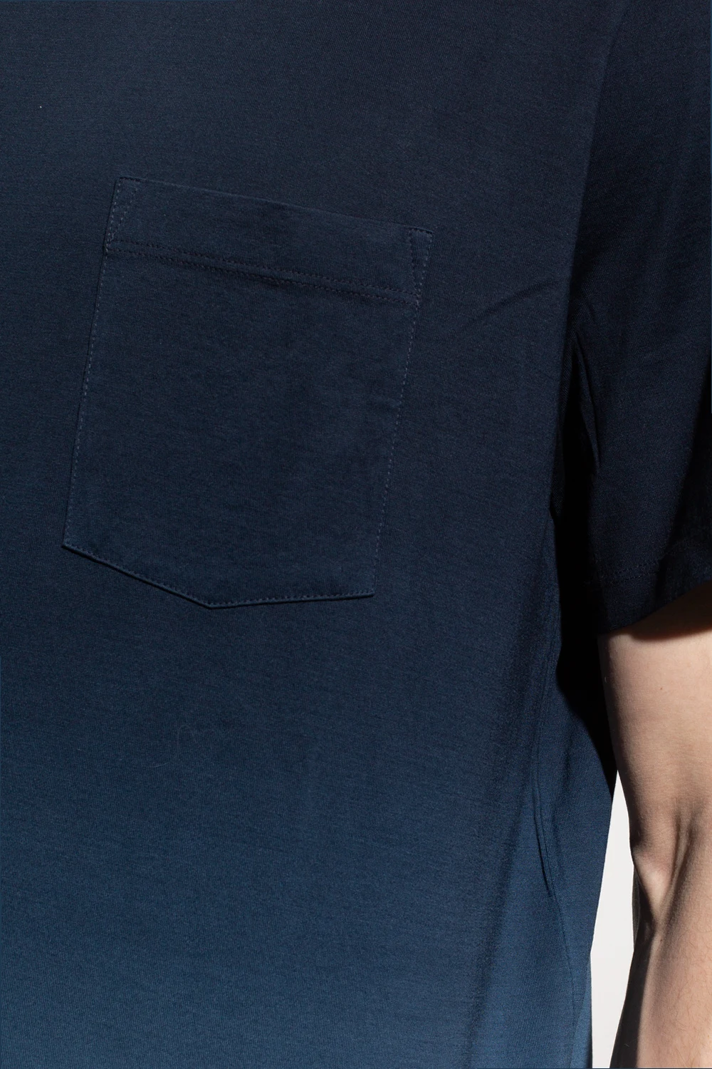 Blue crewneck T-shirt from Theory. Made of cotton with a regular fit, this style features a slip chest pocket.