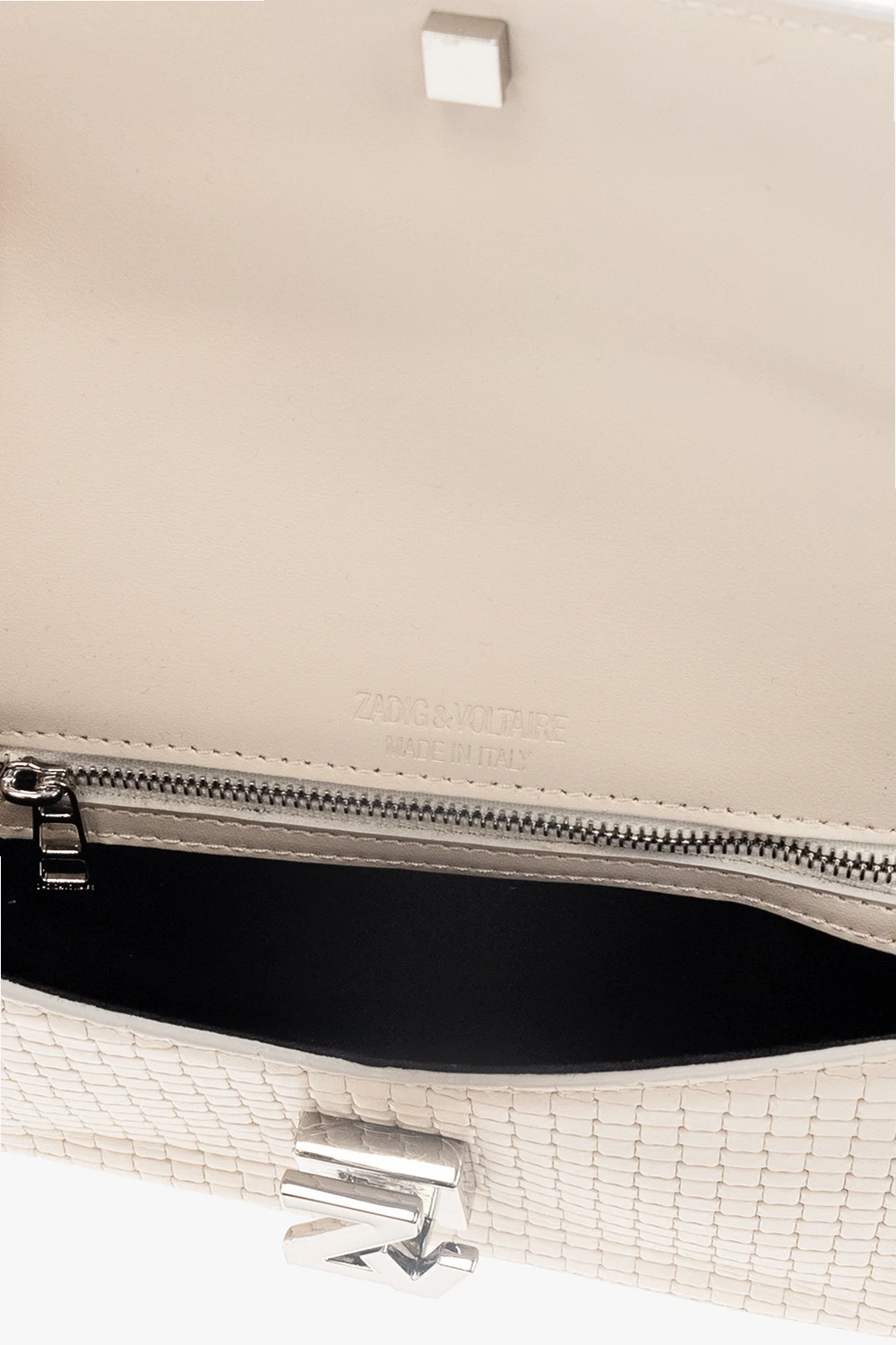 Cream shoulder bag from Zadig & Voltaire. Made of leather, this model features a snap button, detachable shoulder strap, silver-tone metal hardware and one internal compartment with one zip pocket.