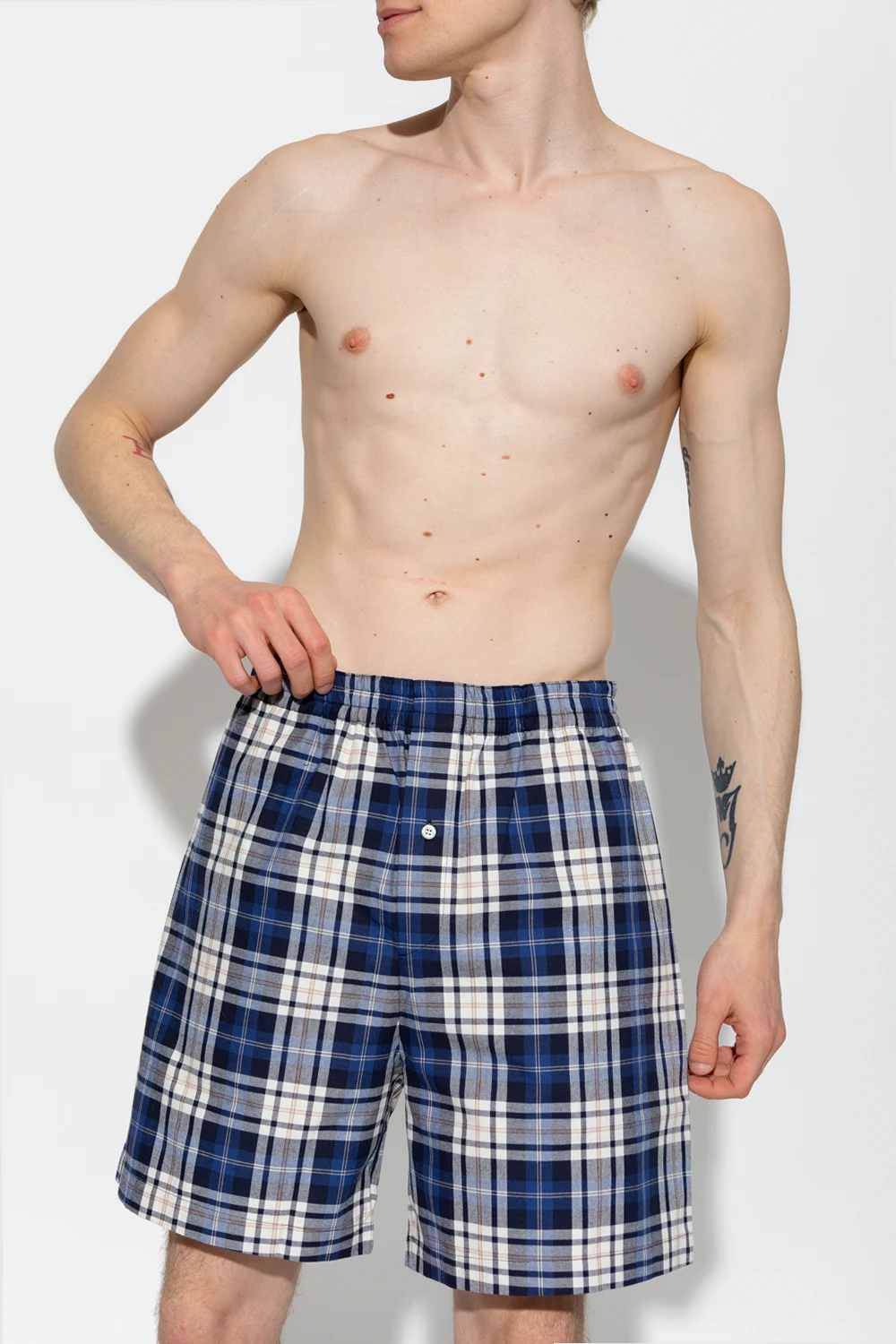 Navy blue and white pyjama bottom from Dsquared2, the ‘Underwear’ collection. Made of checked cotton, this item features an elasticated waistband accompanied by a button closure, red logo embroidery at the back and two front slip pockets.