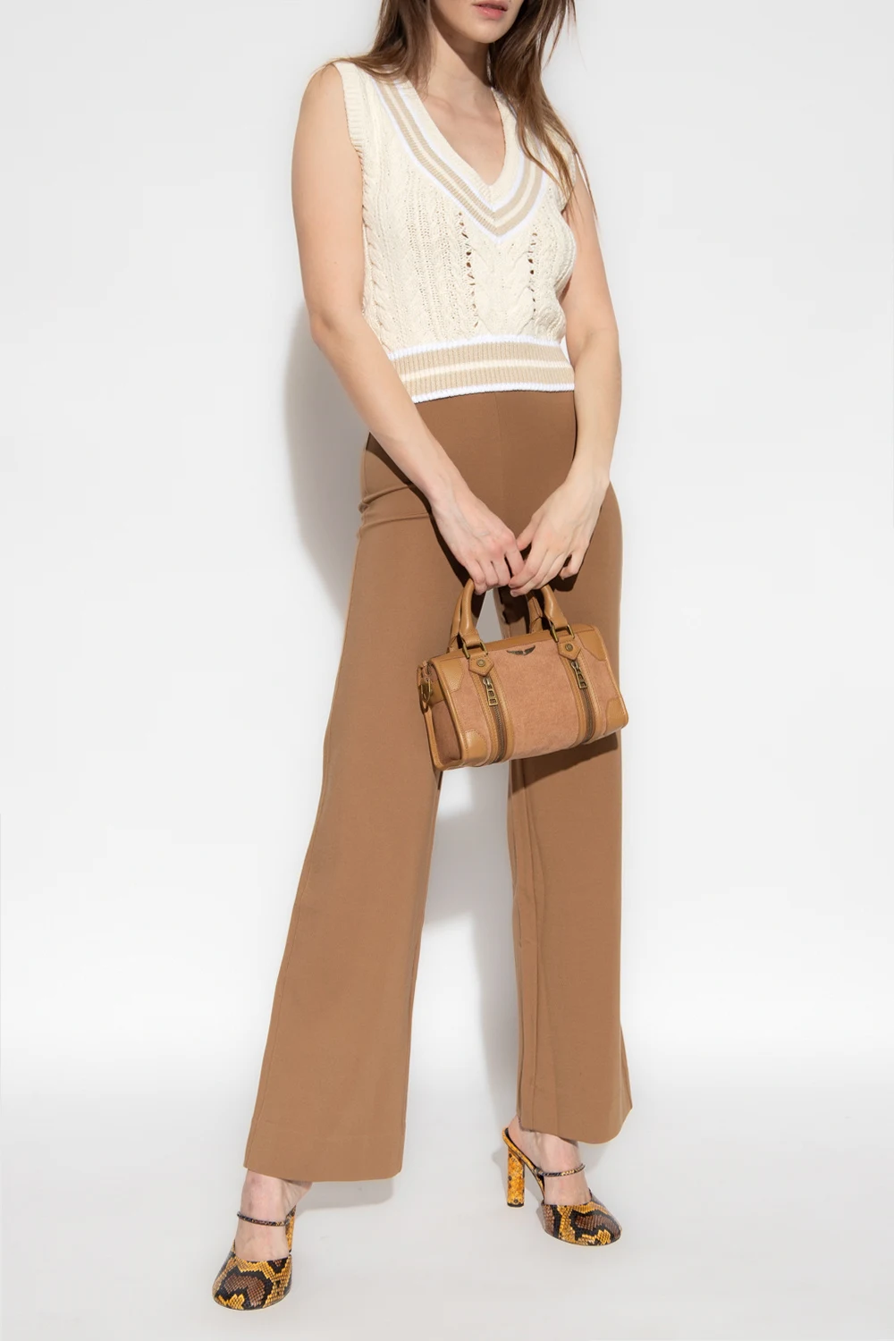 Brown ‘Irina’ high-waisted trousers from Rag & Bone. This pair features straight legs and a logo detail at the back.