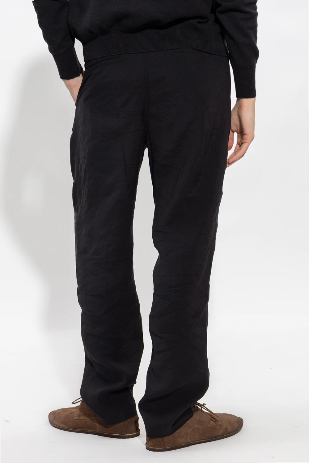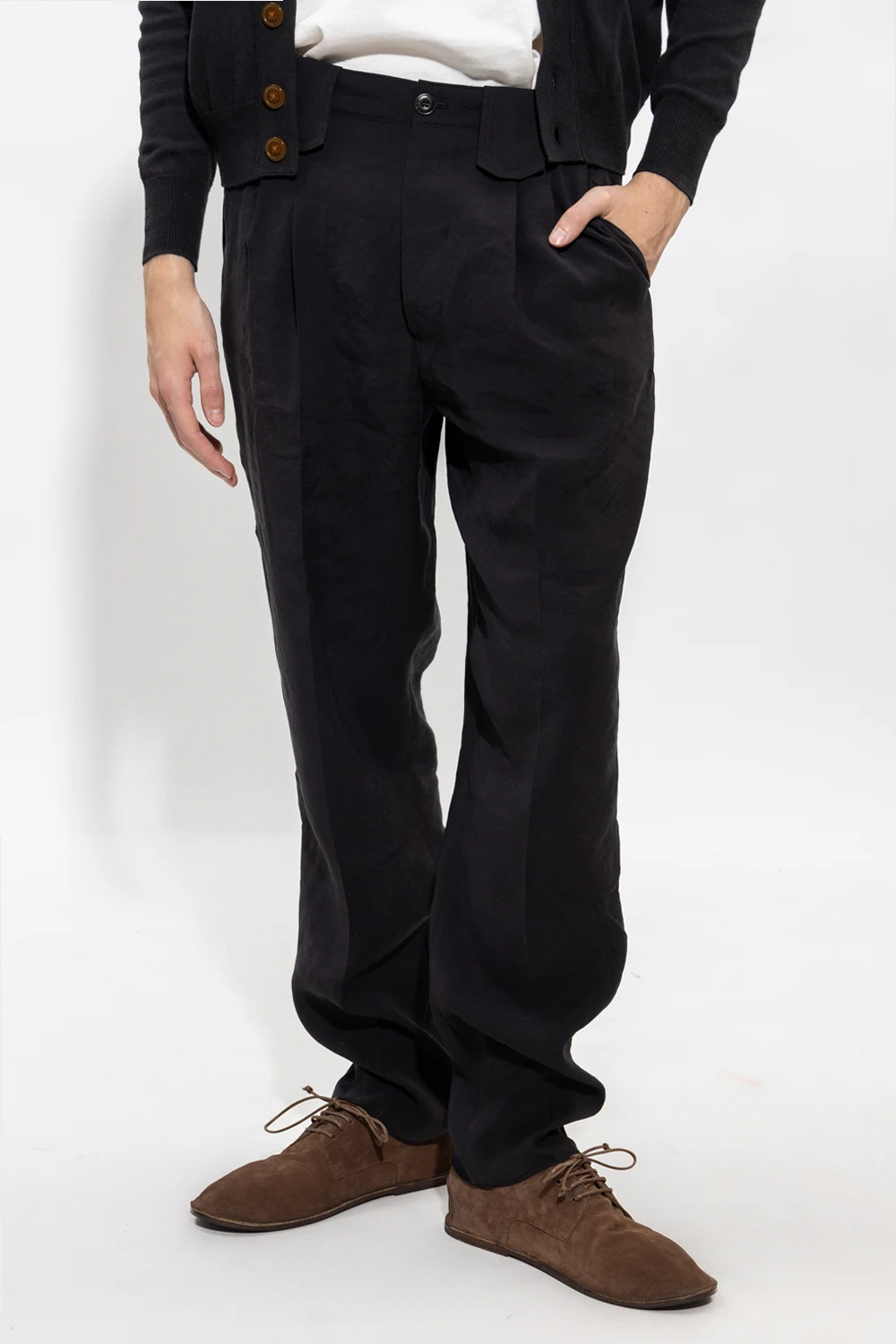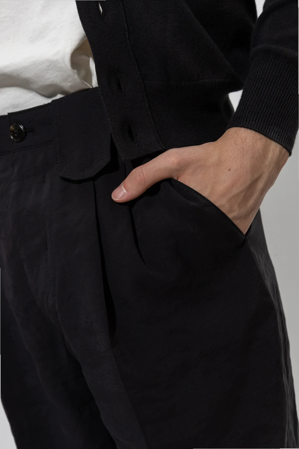 Black ‘Mats’ trousers from Nanushka. Crafted with a relaxed fit, this pair features pleat detailing, button fastenings and four slip pockets.
