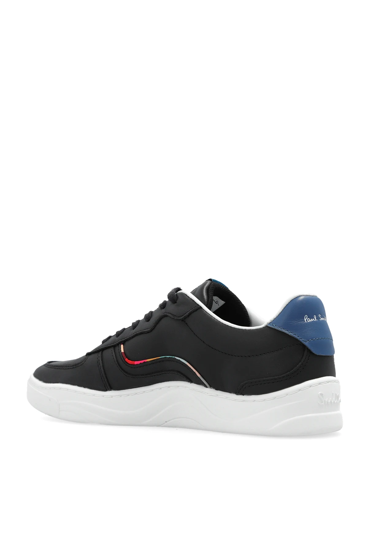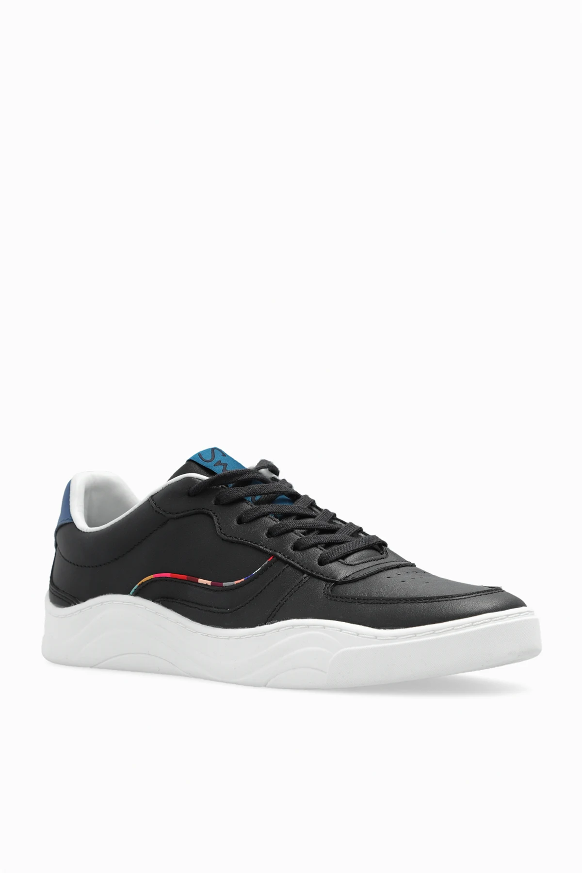 Black ‘Eden’ lace-up sneakers from Paul Smith. Made of leather, this garment features a logo, multicolored trim, perforations on the front and white rubber sole.