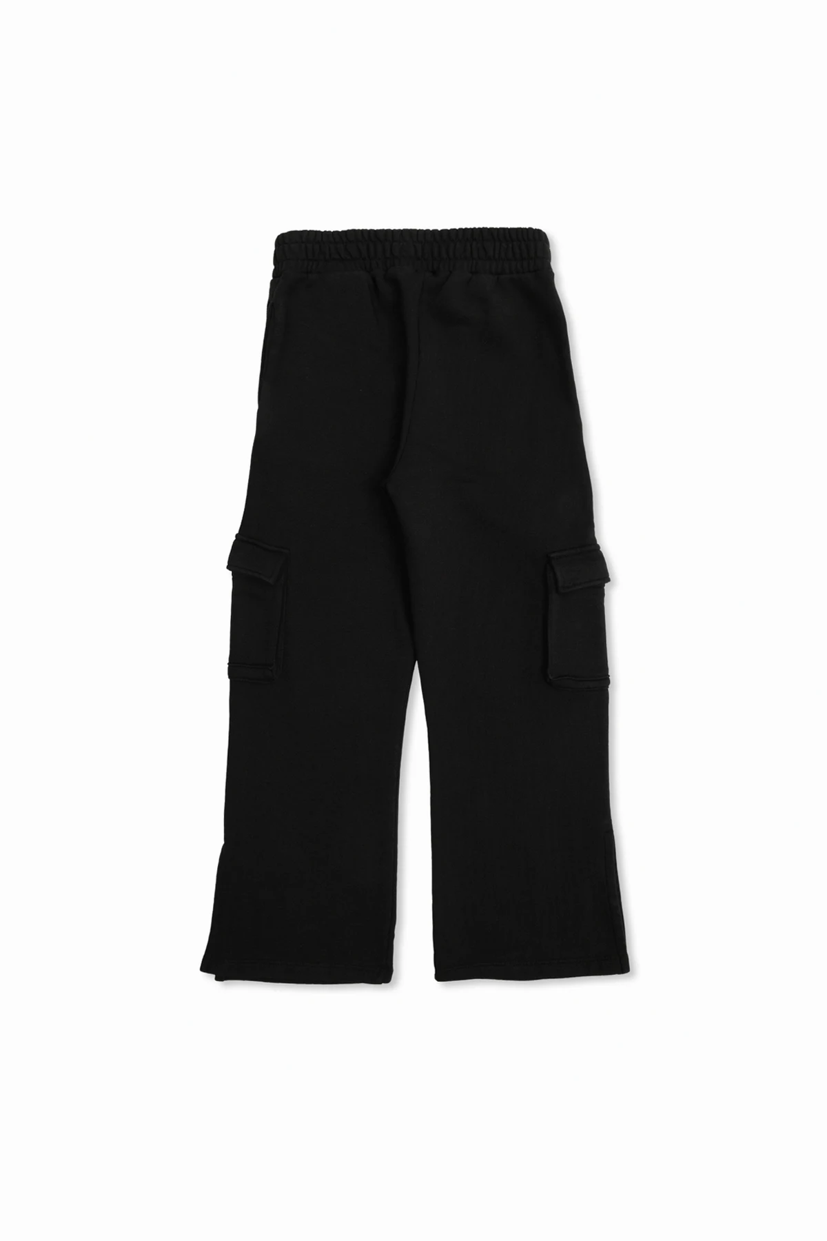 Der lockere Schnitt und die weiten Beine betonen den lässigen Charakter und garantieren gleichzeitig Bequemlichkeit dank des elastischen Gummibunds in der Taille. Das Produkt ist mit funktionalen Cargo-Taschen mit Patten bereichert, und zusätzliche Eingrifftaschen sowie dezente Seitenschlitze an den Beinen verleihen einen einzigartigen Stil und Modernität.